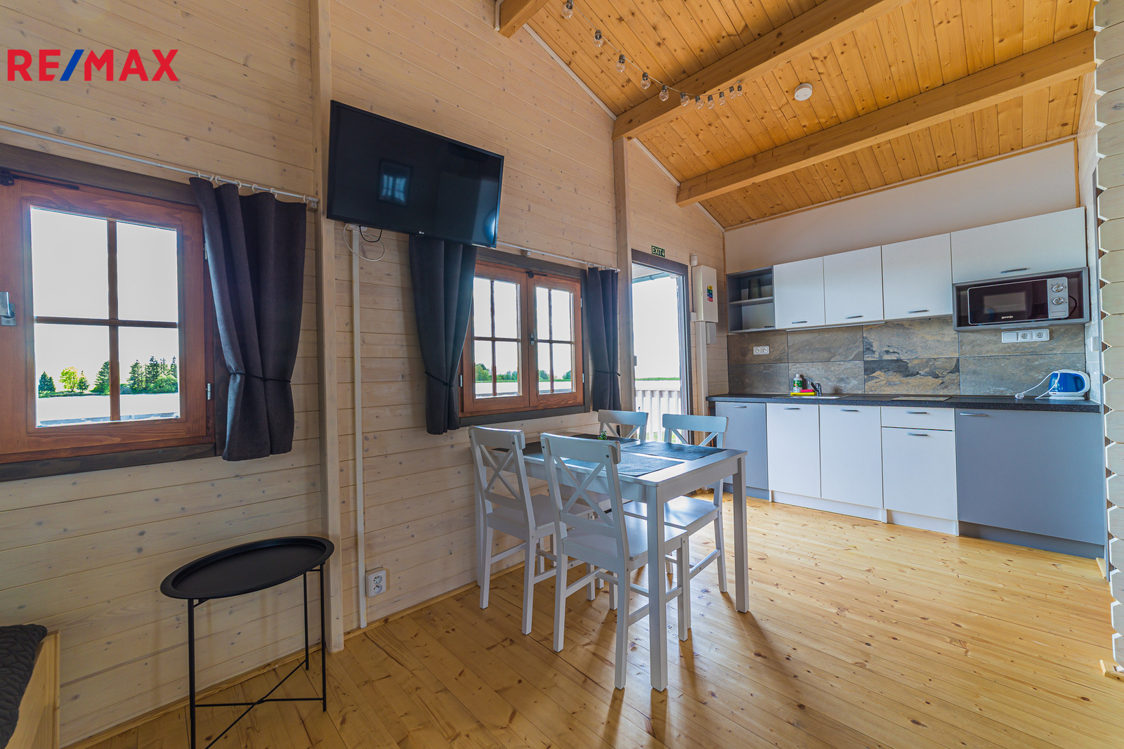 1 provozní chatka- Slouží jako zázemí recepce pro pohodlný chod resortu.