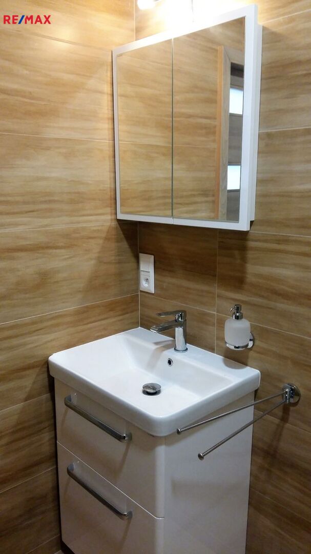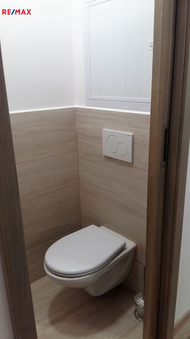 - Koupelna se sprchovým koutem a prostorem pro pračku a sušičku