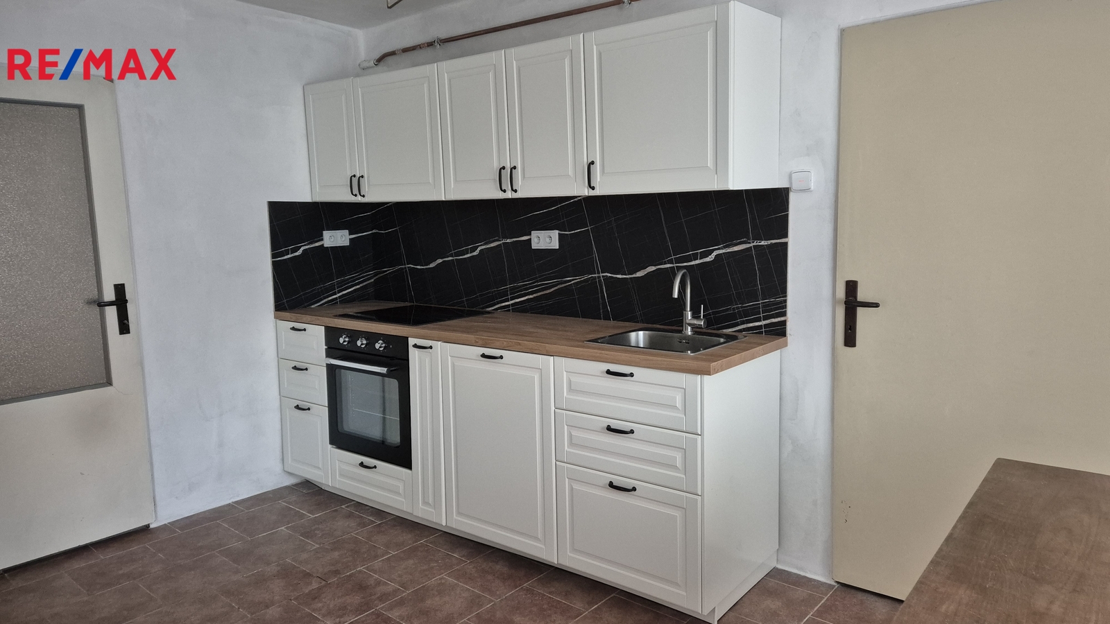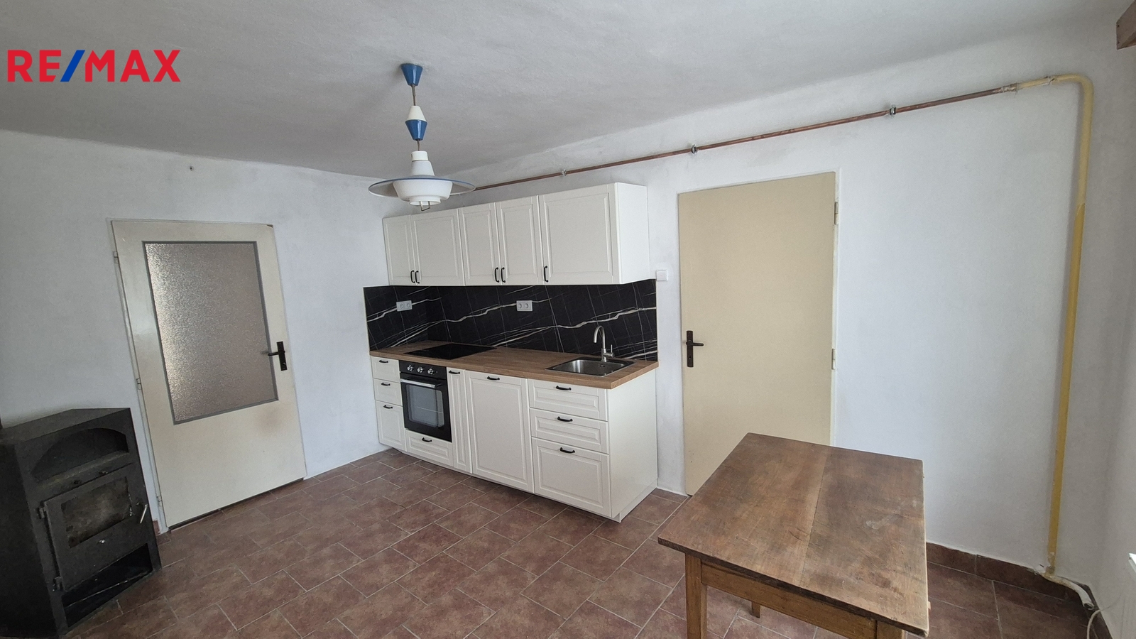 Vstup do domu je zajištěn vraty - vjezdem, který můžete využít jako garáž nebo samostatnou brankou a přes dvorek vstupními dveřmi do chodby. Z chodby je vstup do koupelny se sprchovým koutem a WC nebo do kuchyně a komory/spíže. V kuchyni jsou novější krbová kamna a nová kuchyňská linka s indukční varnou deskou a elektrickou troubou. Kuchyně je dále průchozí do dvou samostatných pokojů. Vytápění a ohřev vody jsou zajištěny pomocí kombinovaného plynového kotle. Na dvorku je pergola s posezením a kůlnou.