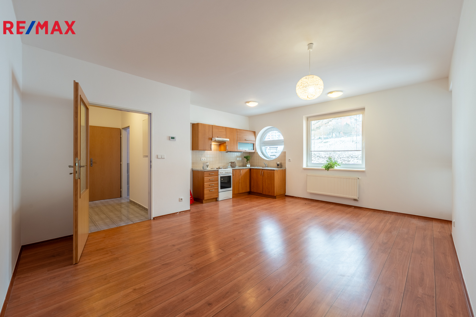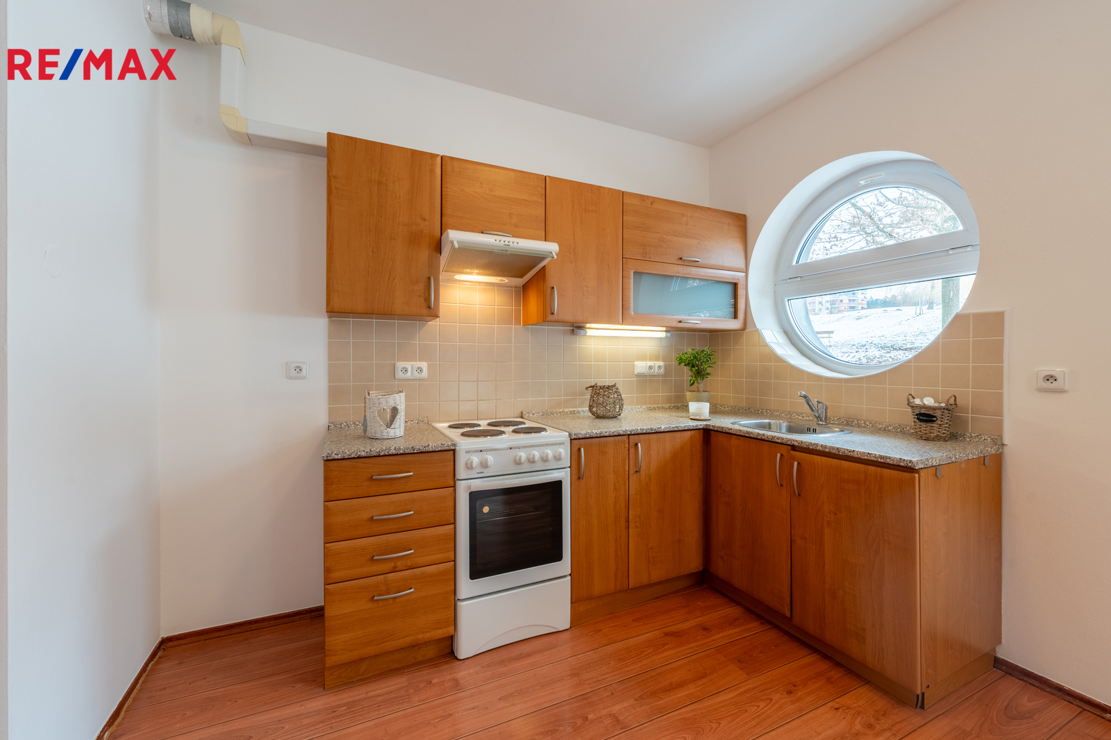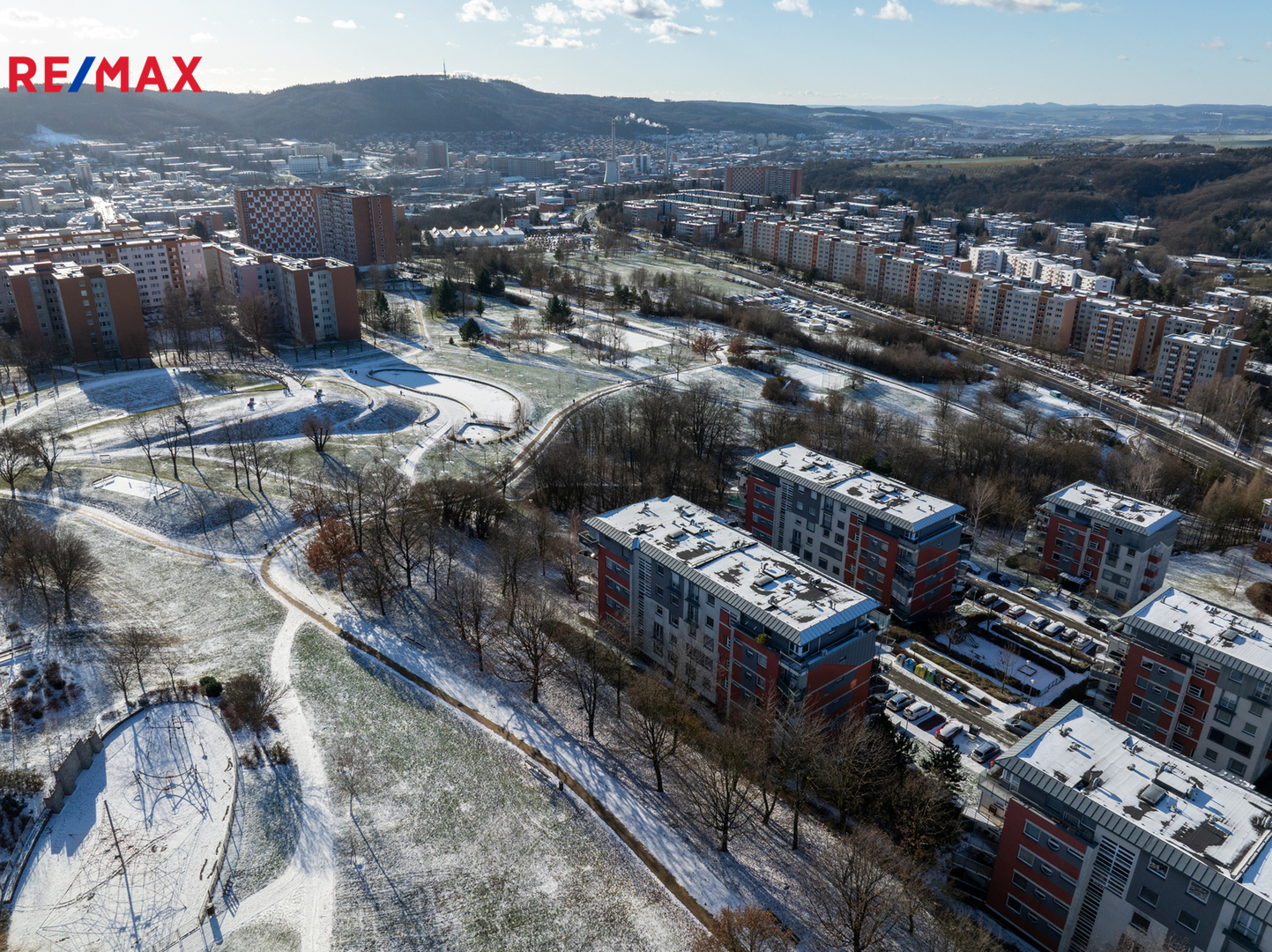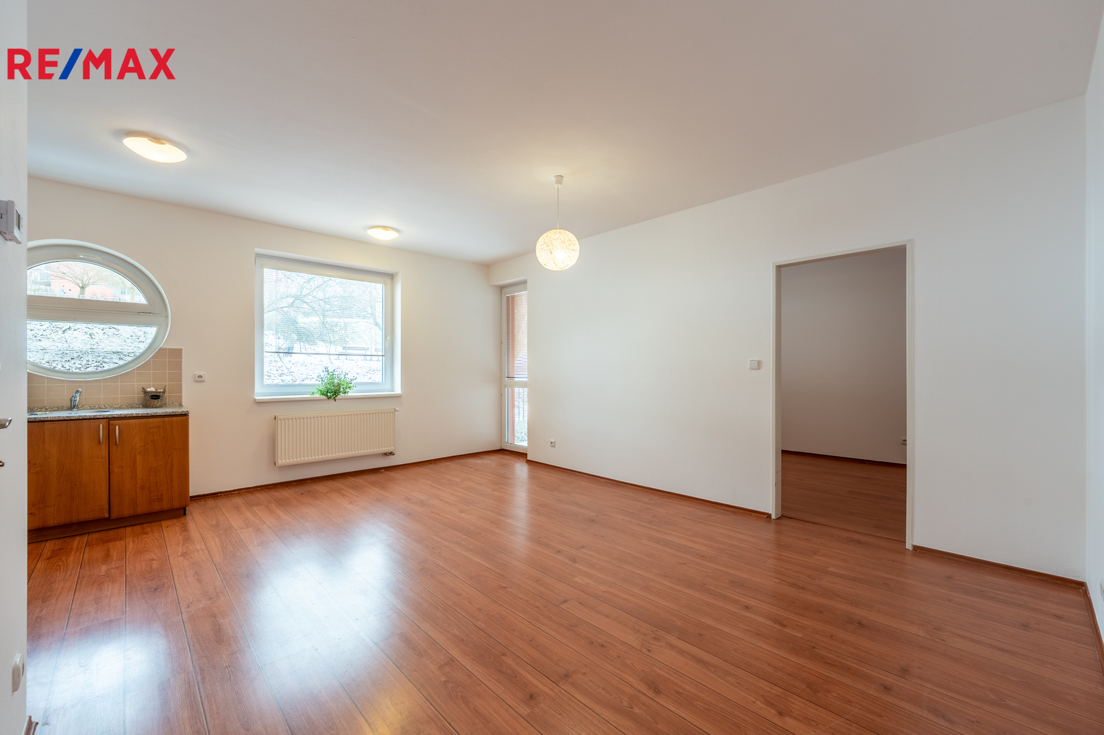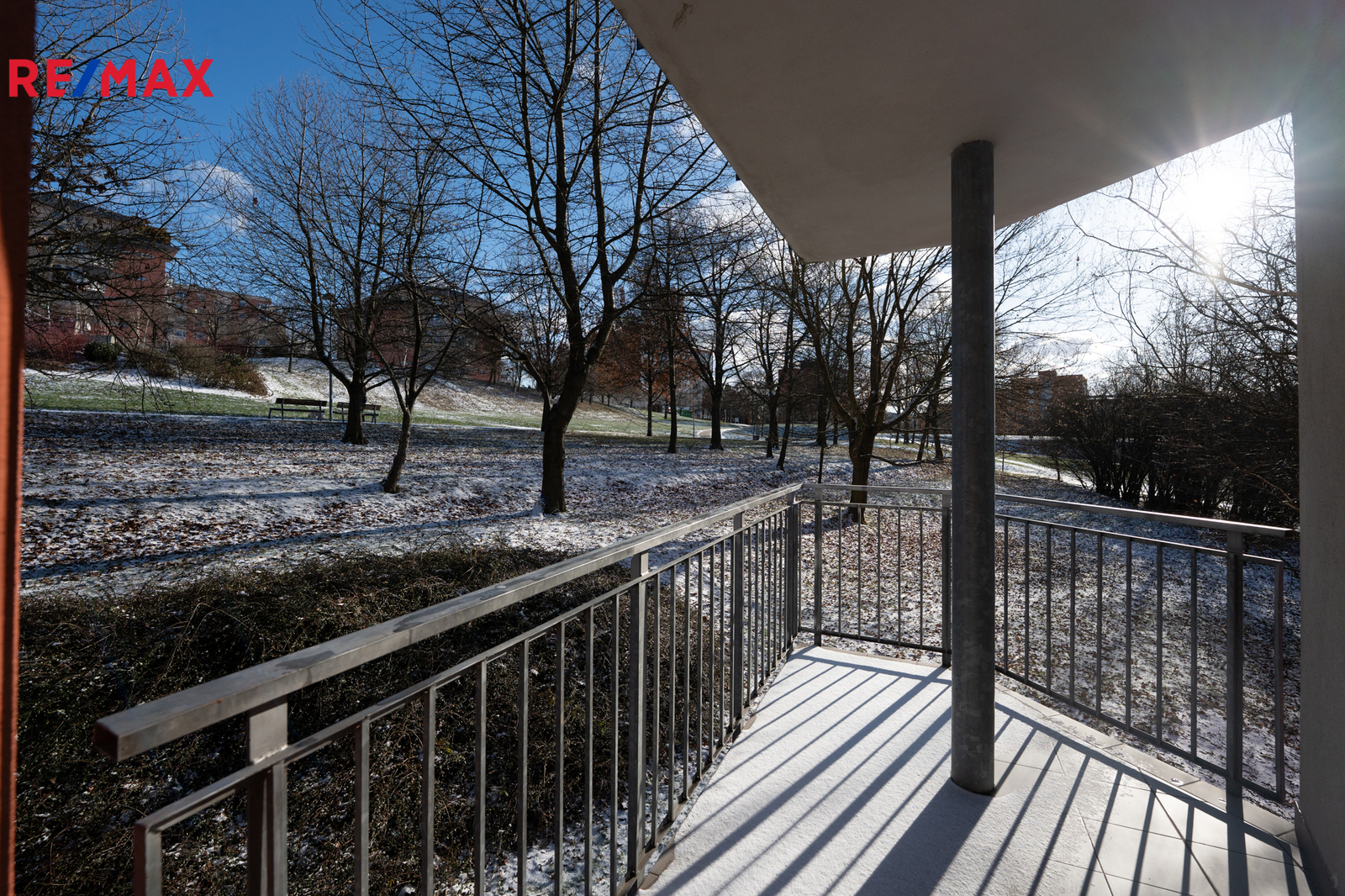 Dominantou bytu je světlý a vzdušný obývací pokoj s kuchyňským koutem, ze kterého je vstup na pěkný balkon. Na balkon je zároveň vstup i z ložnice, což zajišťuje maximální komfort bydlení.