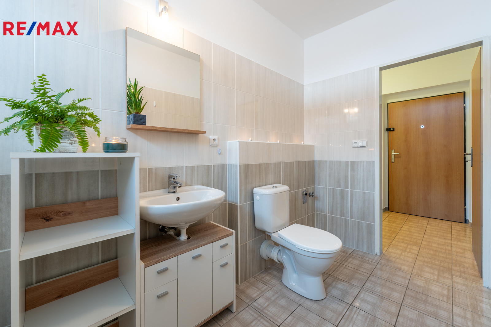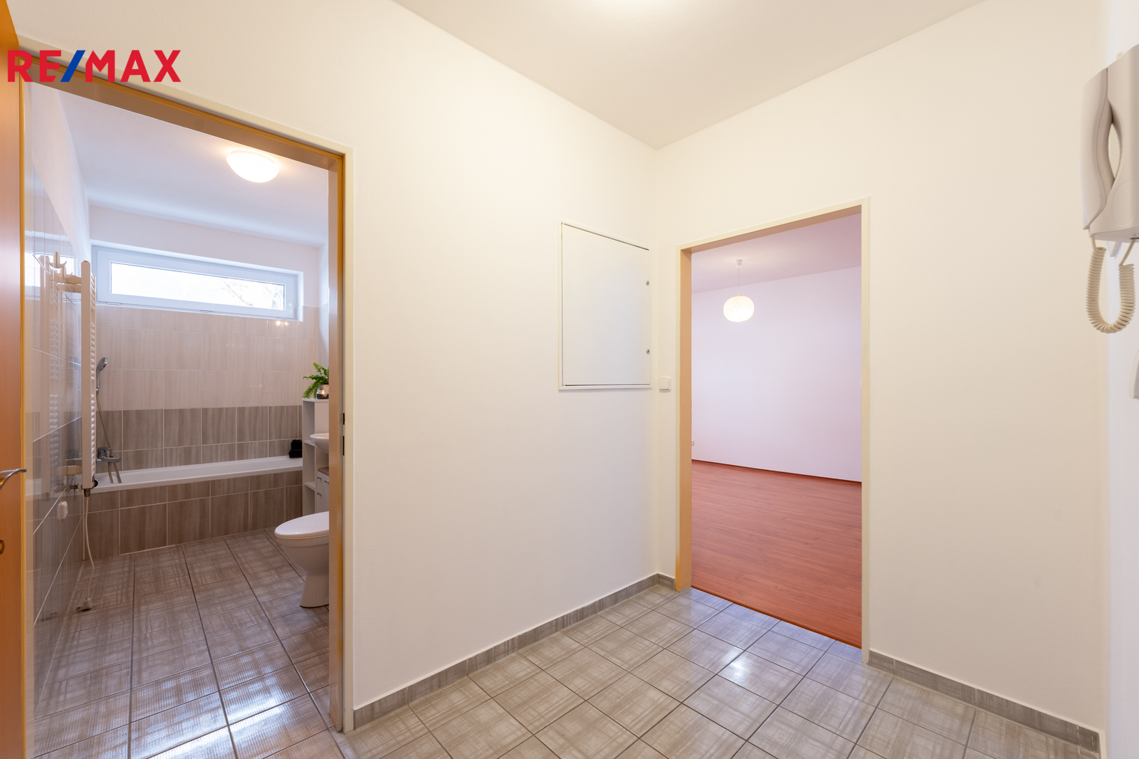 Po vstupu do bytu vás překvapí opravdu prostorná vstupní chodba s možností vybudování vestavěných skříní. Byt dále nabízí velkou koupelnu s vanou, umyvadlem a toaletou.