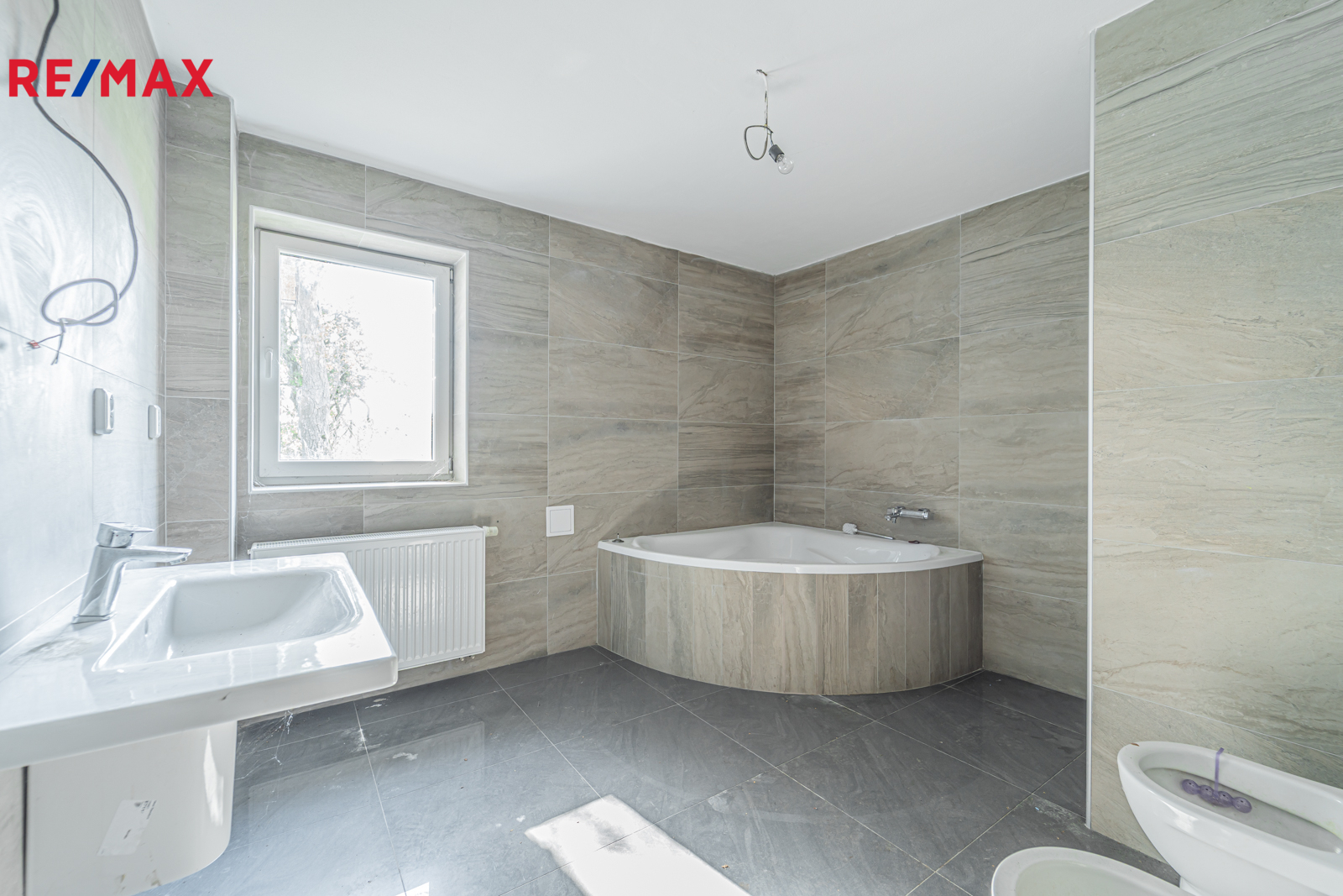 Dispozice: 1.NP: vstupní chodba, obývací pokoj propojený s kuchyní a vstupem na terasu, 2 pokoje, koupelna s rohovou vanou, WC. 2.NP: 3 pokoje, koupelna se sprchovým koutem a WC.