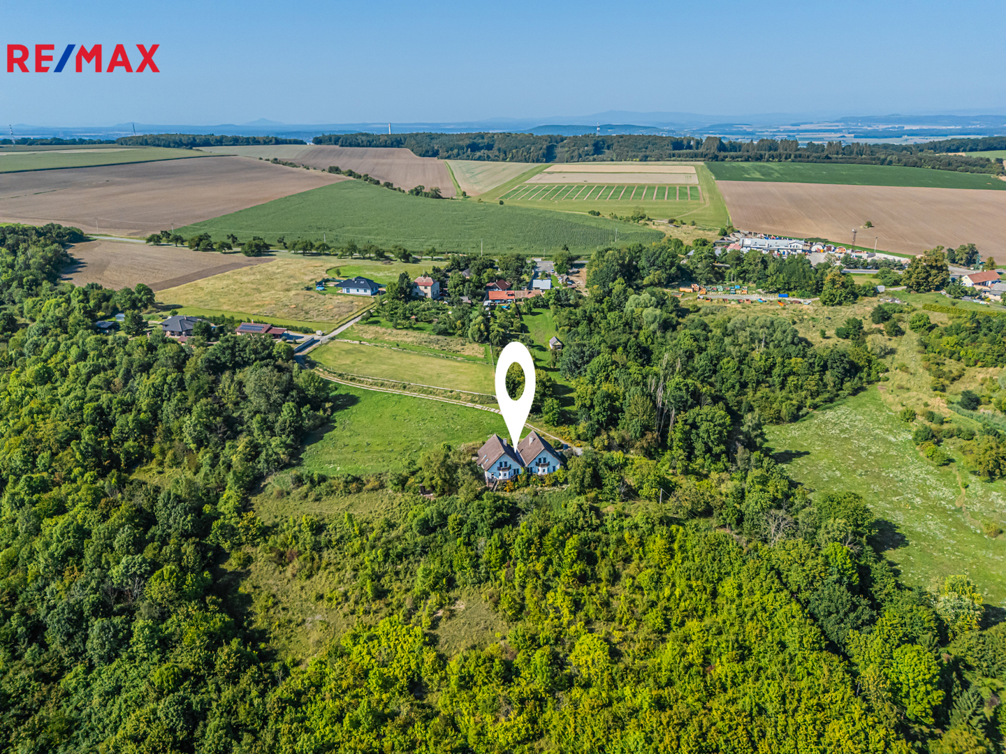 Dům se nachází na jedinečném, klidném místě s hezkým výhledem do krajiny. Příjezd k nemovitostem po obecní komunikaci.
