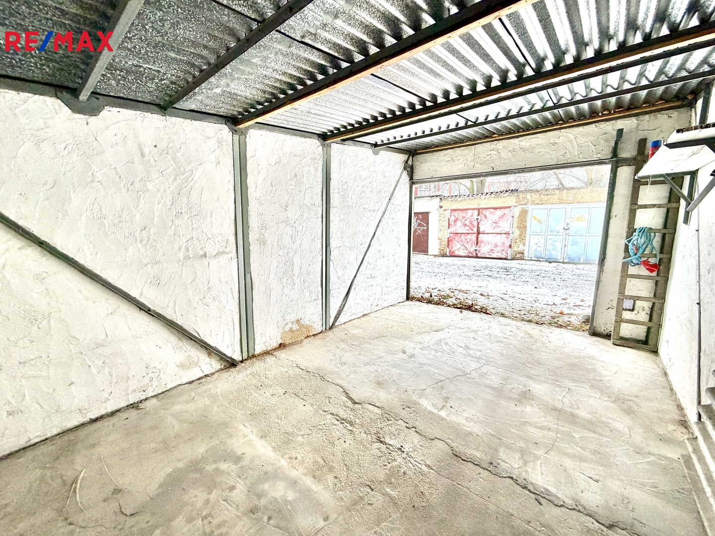 Garáž je zděná, suchá a udržovaná, v dobrém technickém stavu, bez elektřiny, se střechou s plechovou krytinou. Nevyžaduje žádné okamžité investice a je vhodná jak pro vlastní parkování či skladování, tak jako investice k pronájmu.