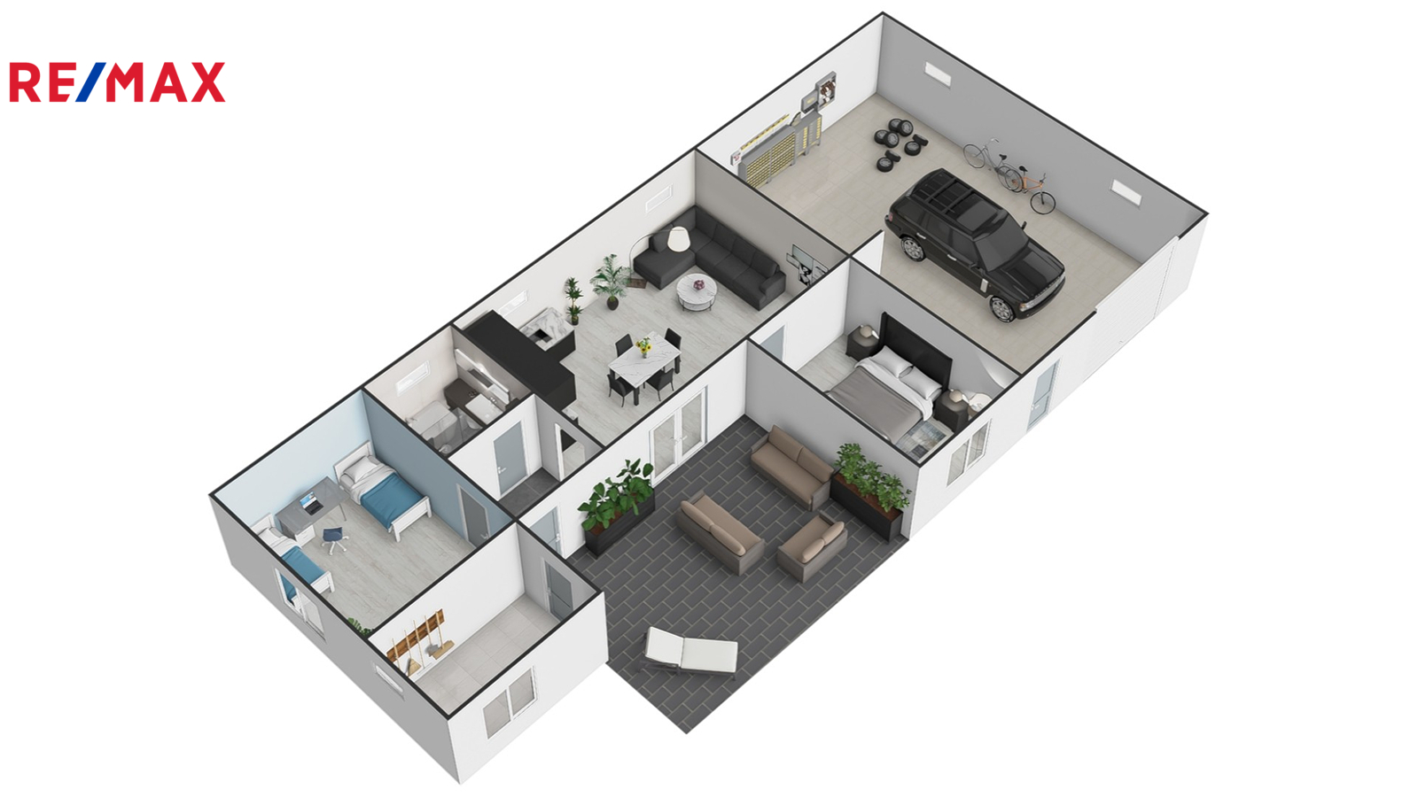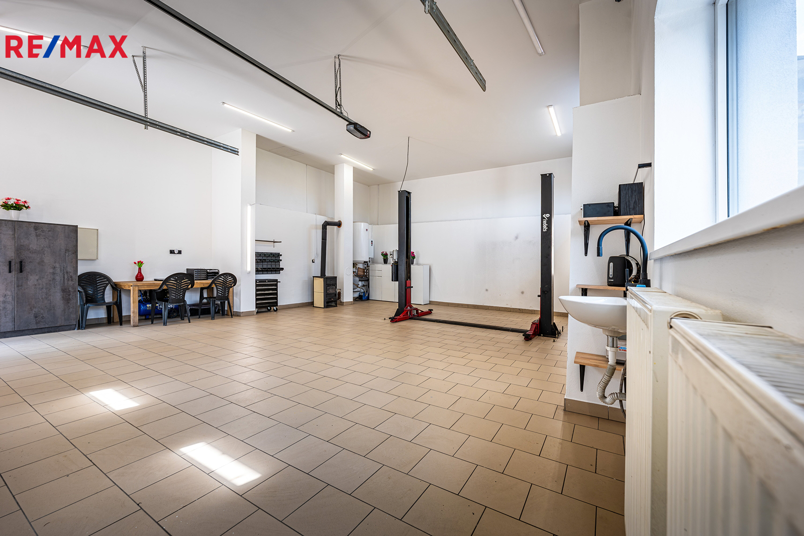 Dům se prodává kompletně vybavený, včetně na míru vyrobeného nábytku, kuchyňské linky se spotřebiči a elektroniky – například televizí v každé místnosti. Prakticky je rozdělen na obytnou část a dílnu, každá s vlastní elektroinstalací. V dílně se nachází zvedák pro auta a elektrická brána. K dispozici je i menší sklep.