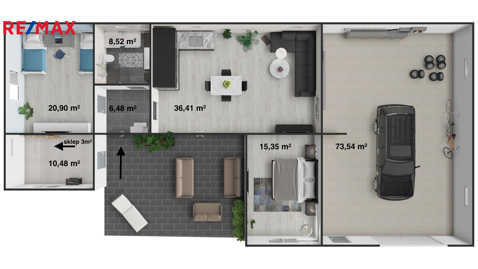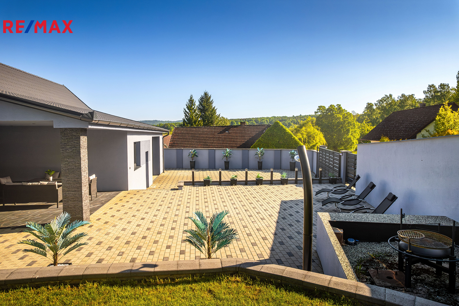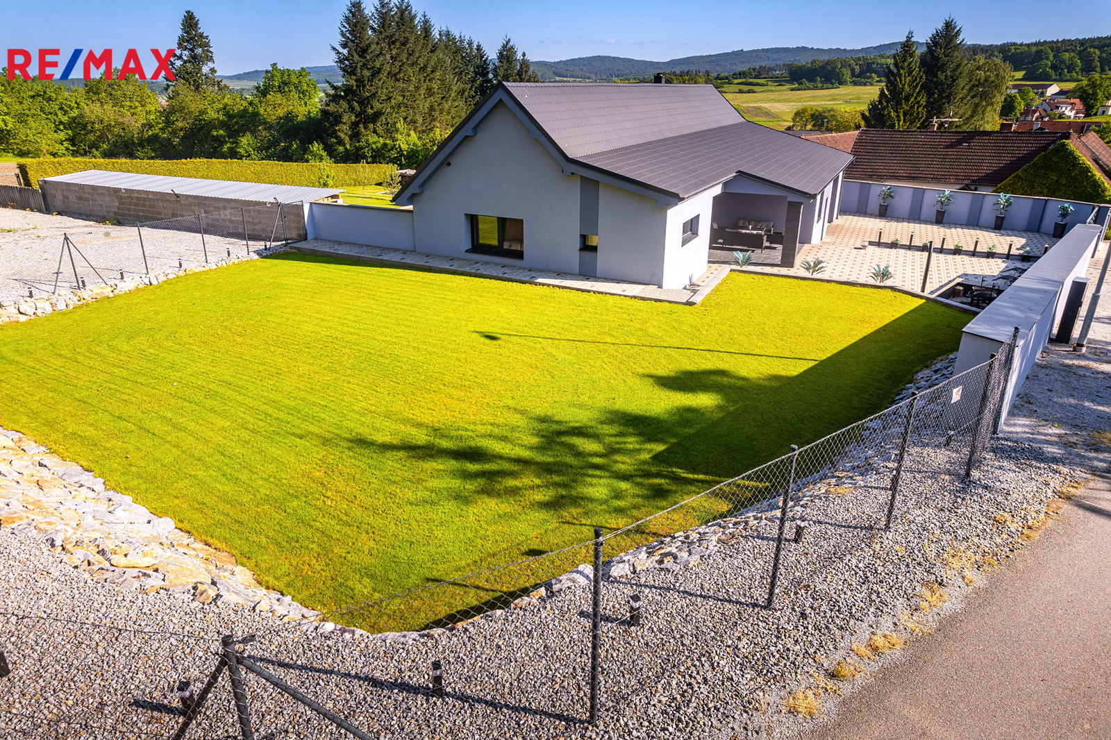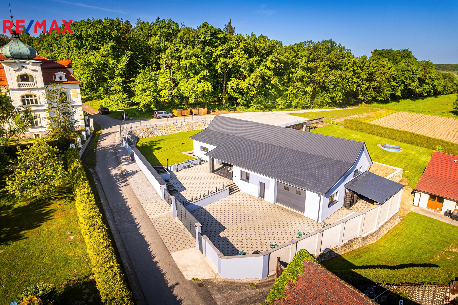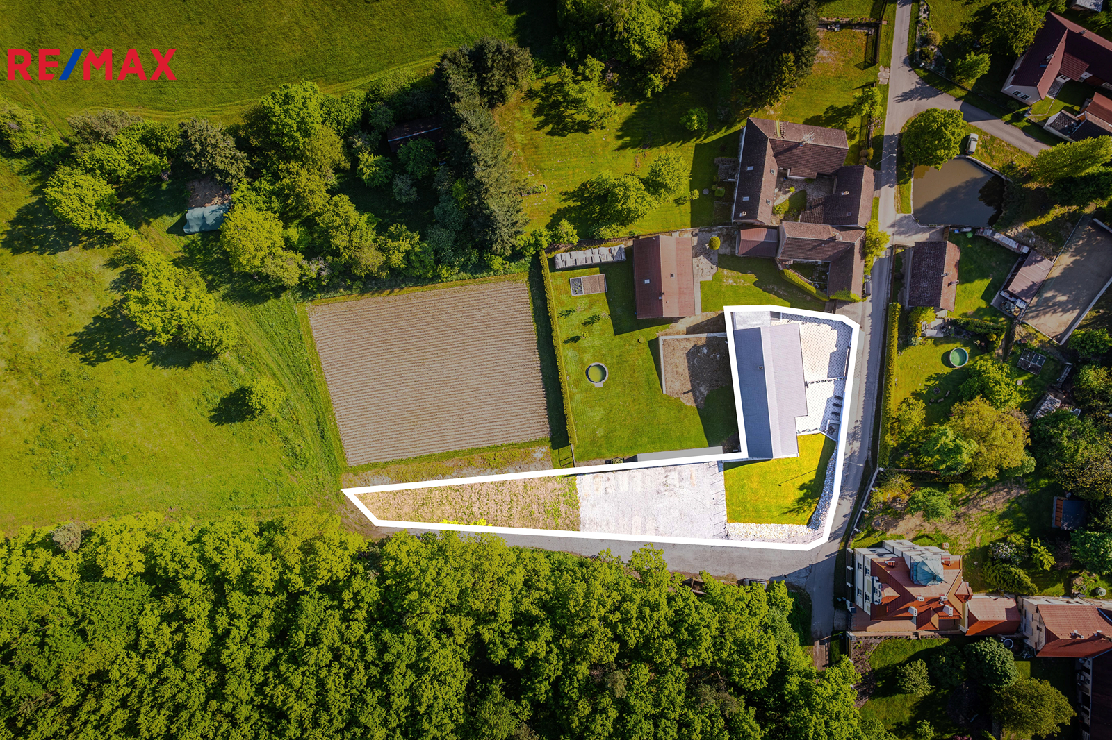 Dům má zastavěnou plochu 171 m² a stojí na pozemku o celkové výměře 1 730 m². Na zastavěné ploše a nádvoří o velikosti 566 m² se nachází samotný dům, technická místnost a upravený dvůr se zahradní sprchou, posezením a elektrickou bránou pro pohodlný vjezd. Součástí je také zahrada o výměře 368 m² s pečlivě udržovaným trávníkem, vhodná pro relax i zahradničení. Další pozemek o velikosti 796 m² slouží nyní jako parkovací plocha, nabízí se však i možnost rozšíření zahrady.