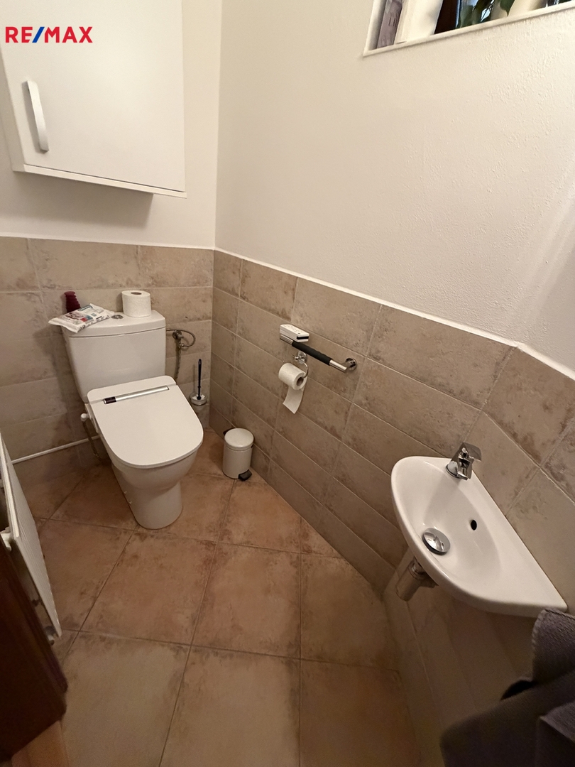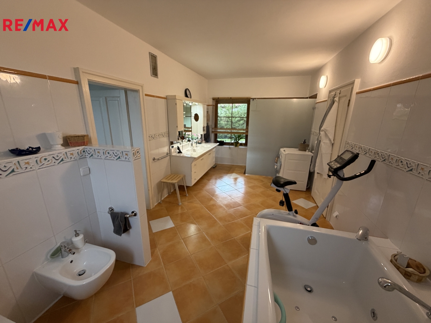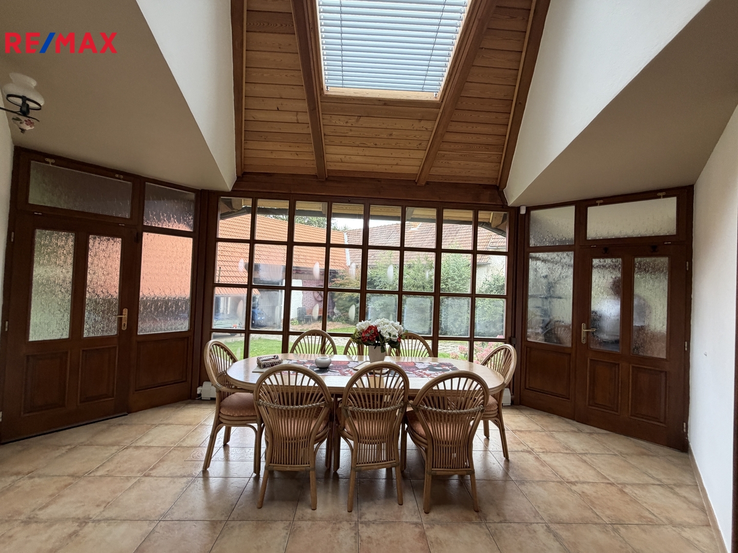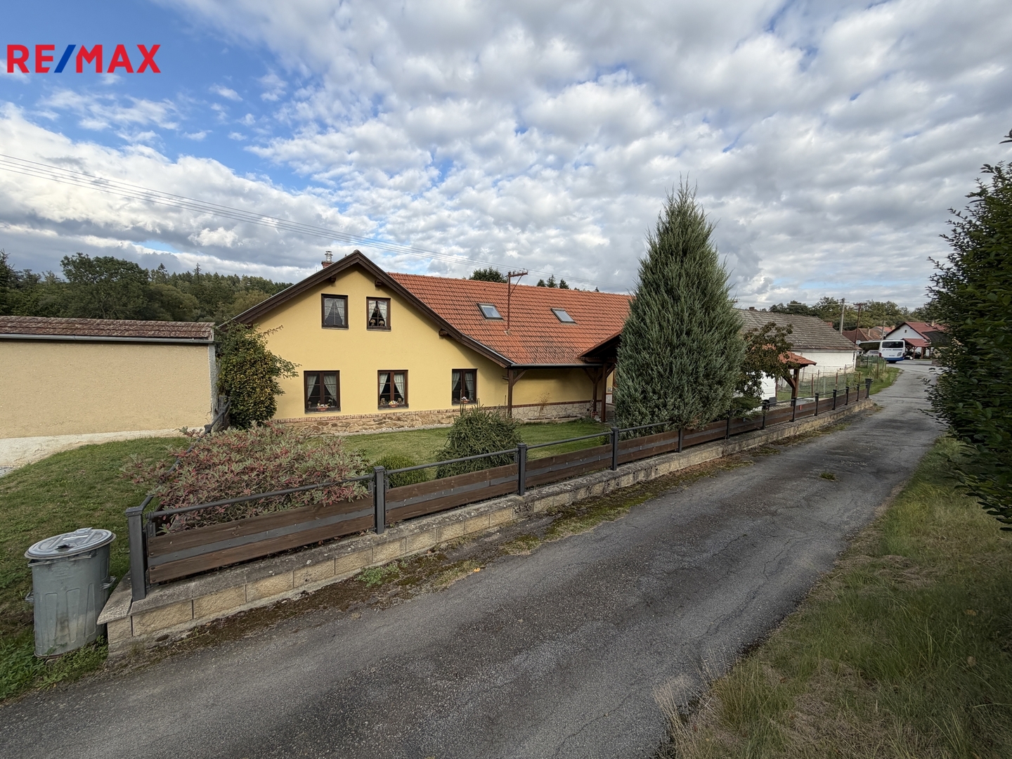Jedná se o prodej rod. domu v obci Vlásenice 4km od Pelhřimova. Multifunkční stavba prošla v roce 2001 generální rekonstrukcí s chytře navrženým využítím spojujícím dvougenerační bydlení (3+1 a 6+1 ) nebo podnikání s bydlením. Dům je dispozičně tvořen v přízemí vstupní předsíní 5m2, halou 34m2, komorou 2m2, chodbou 3,39m2, WC 2,06m2, koupelnu 19,12m2, sušárnou 10,2m2 spíží 3,66m2, kuchyní 5,80m2, obývacím pokojem 27m2, ložnicí 19,12m2 a šatnou 14,62m2. v podkrovní části se nachází 6 pokojů (47,5m2, 14m2, 16,2m2, 31,7m2, 21m2, 23,3m2) dále chodba 31,3m2, kuchyně 9m2, WC 2,16m2, koupelna 9,6m2, komora 3,12 a schodiště 12,5m2. Před domem se nachází dvě krytá stání, v uzavřeném dvoře jež nabízí absolutní soukromí a průjezd do zahrady se nachází stodola využitelná jako garáž. V zahradě je skladový domek 57m2. Vytápění je řešeno novým automatickým kotlem 25KW na pelety nebo dřevo s akumulační nádrží 1000l, druhým zdrojem je plynový kotel napojený na vlastní podzemní nádrž Propan-Butan. Veškeré ovládání topení je přes telefon. Dům je napojen na obecní vodovod, odkanalizování je svedeno do septiku s přepadem. Elektřina 230/400V, napojení na telefonní linku, TV, WIFI, zabezpečení Jablotron s napojením na PCO. Pro více informací volejte makléře nabídky.