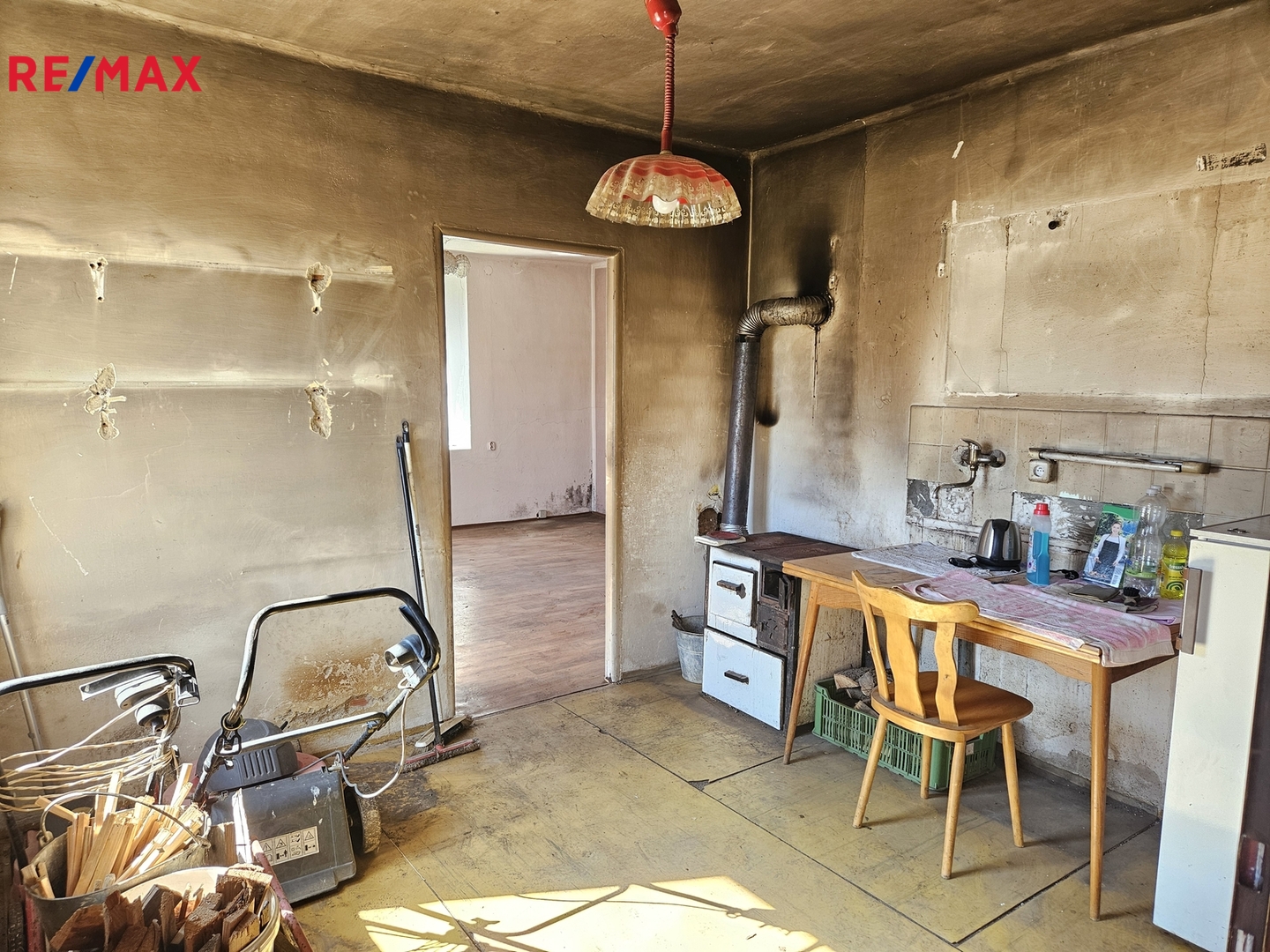 Interiér domu čeká na zásadní úpravy či dokončení. Podlahy, schodiště, část rozvodů, vnitřní úpravy stěn a stropů budou vyžadovat investici. Konstrukce domu a střecha jsou ovšem v zachovalém stavu. Dům má potenciál vytvořit příjemné venkovské bydlení na trvalo nebo třeba jen jako letní sídlo.