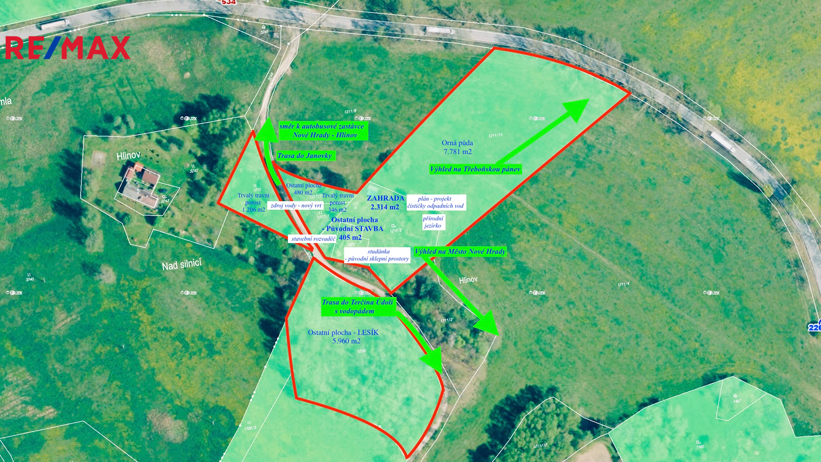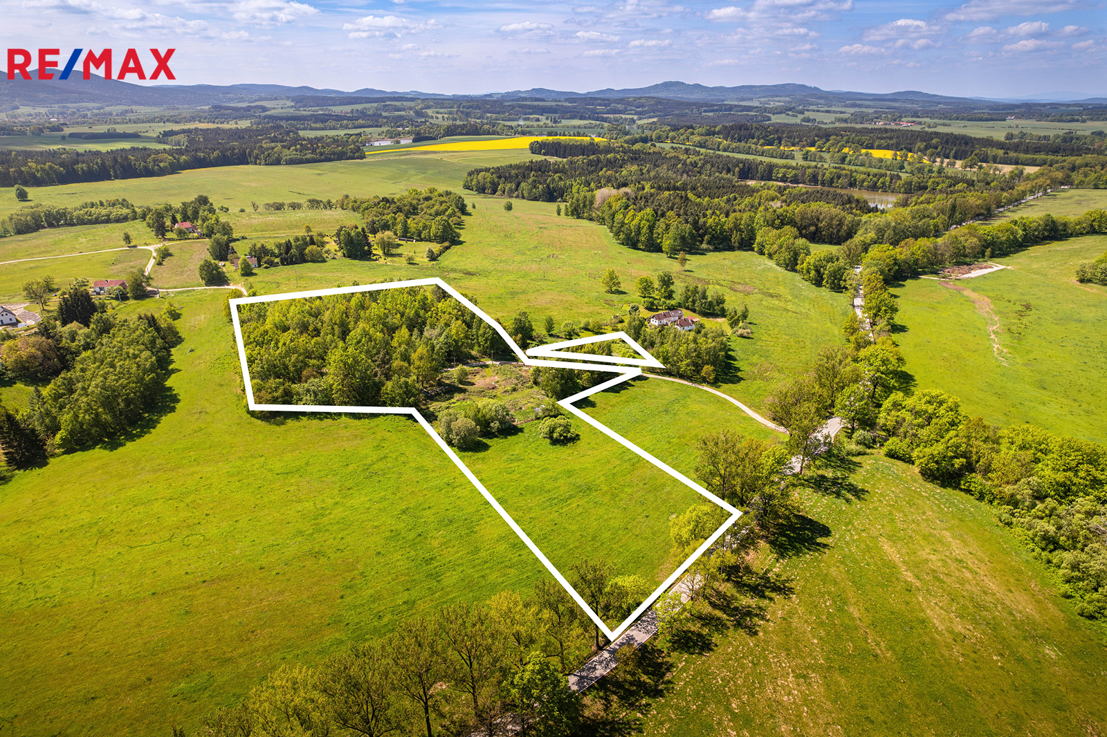Nabízíme k prodeji výjimečný pozemek v osadě Hlinov, skrytý v téměř nedotčené krajině Novohradských hor, kde se rozprostírají rozlehlé lesy, sluncem zalité louky, šumící potoky a spletité stezky vedoucí k malebným vesničkám. Celková plocha 18.492 m² sestává z více propojených parcel tvořících uzavřený celek, z nichž 2.719 m² je určeno pro výstavbu rodinného domu k trvalému bydlení, rekreačního objektu nebo menší agrofarmy.