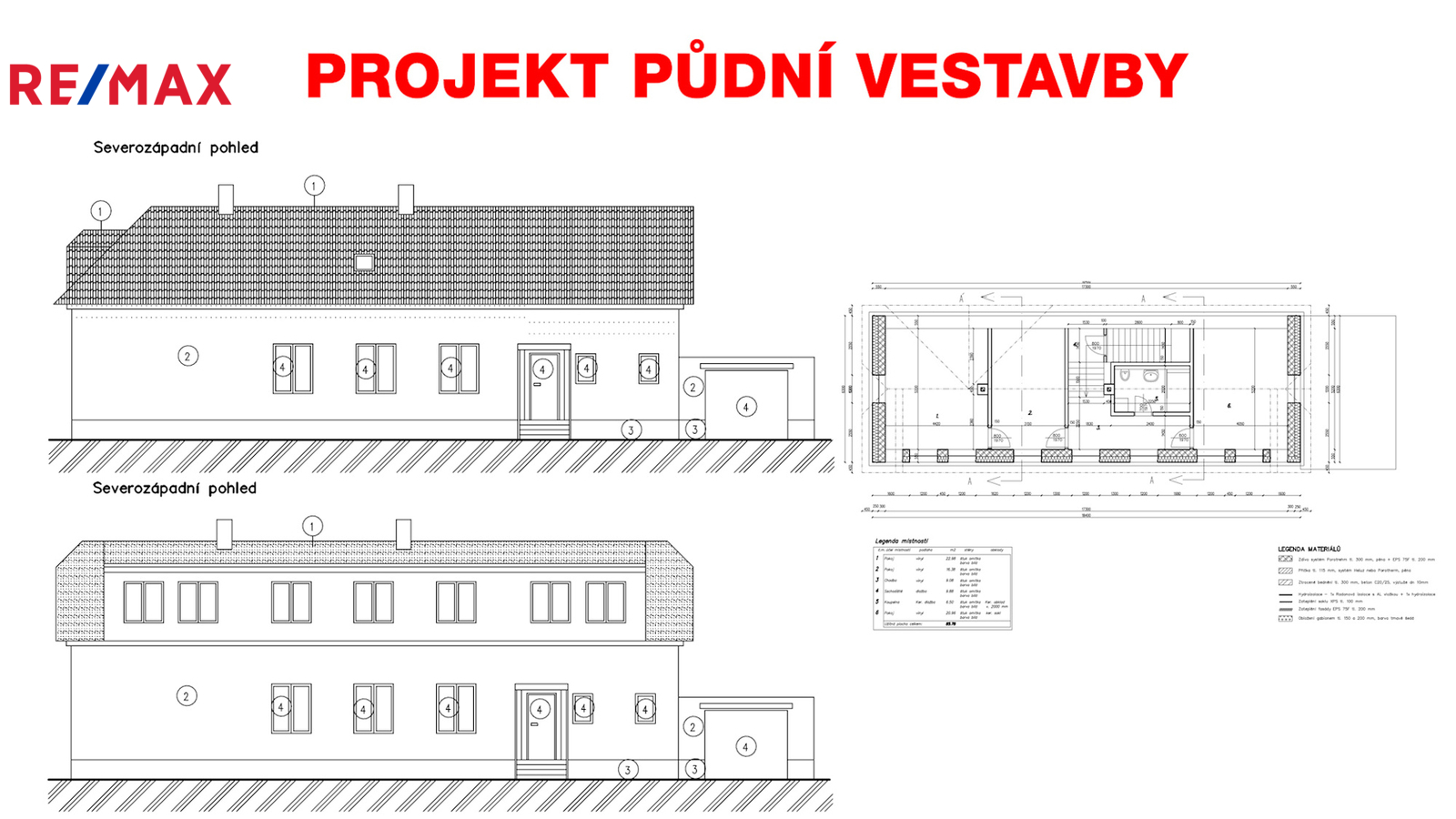 Projekt půdní vestavby je ve fázi podání na stavební úřad. Dle PENB je dům aktuálně veden v energetické třídě F, přičemž projekt počítá se zlepšením na třídu E.
