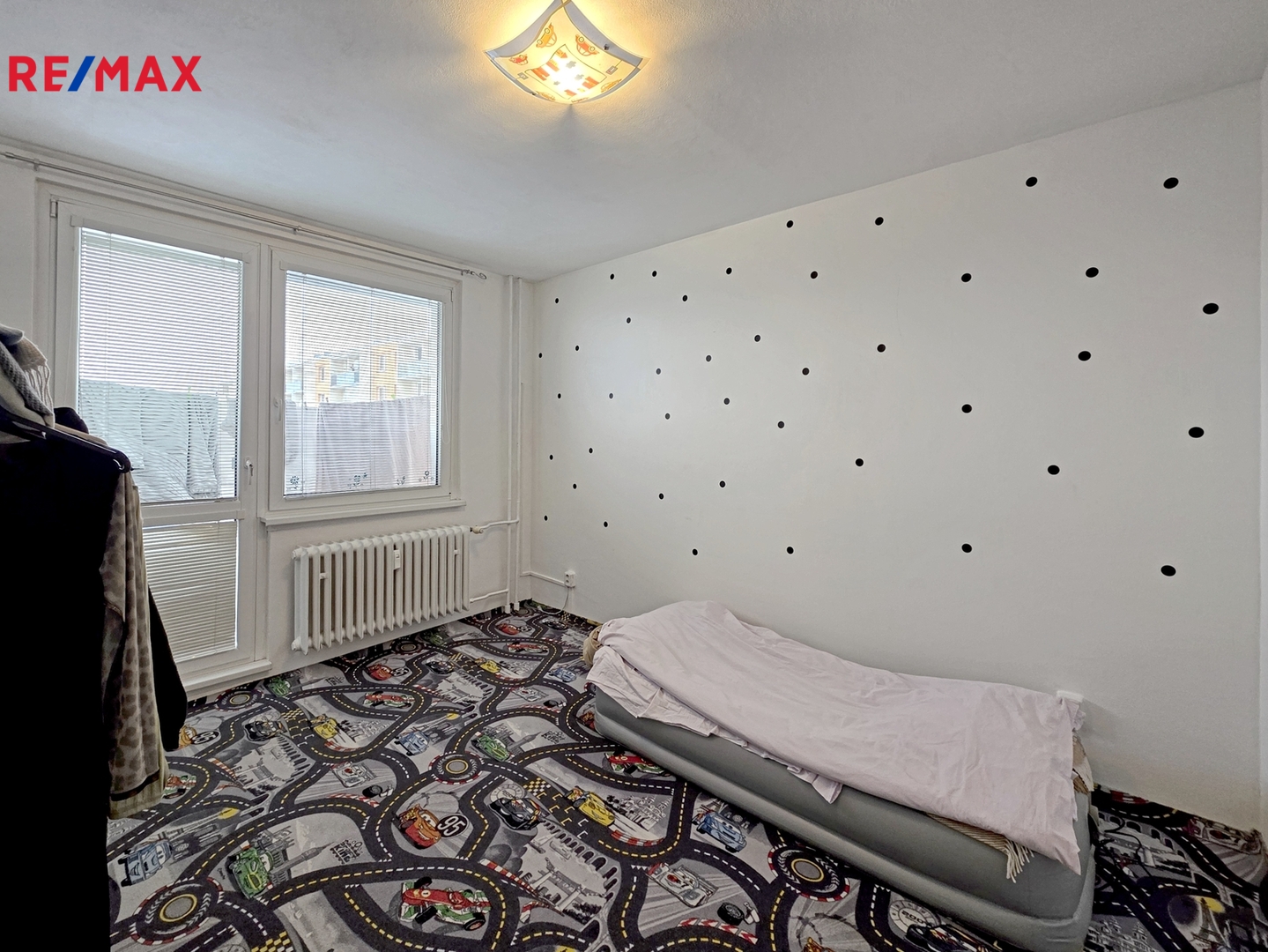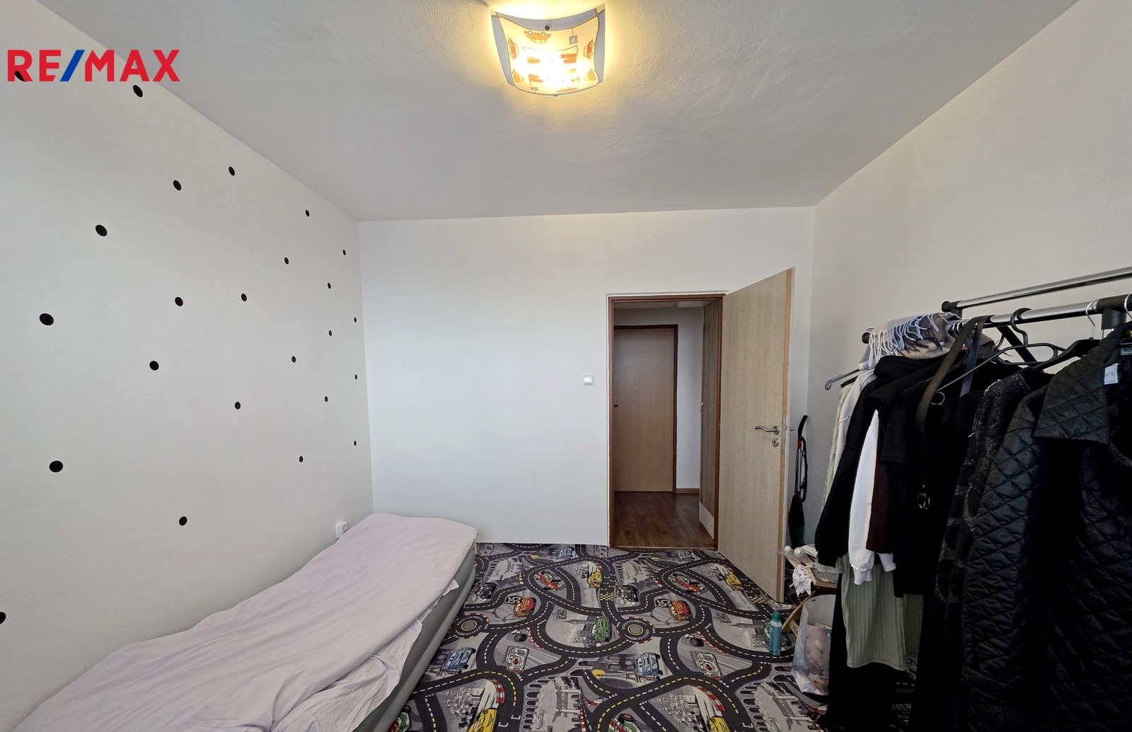 V obývacím pokoji zůstává obývací stěna, na chodbě šatní skříň a za posuvnými dveřmi je prostorná komora. Na balkoně je posezení pro dva.