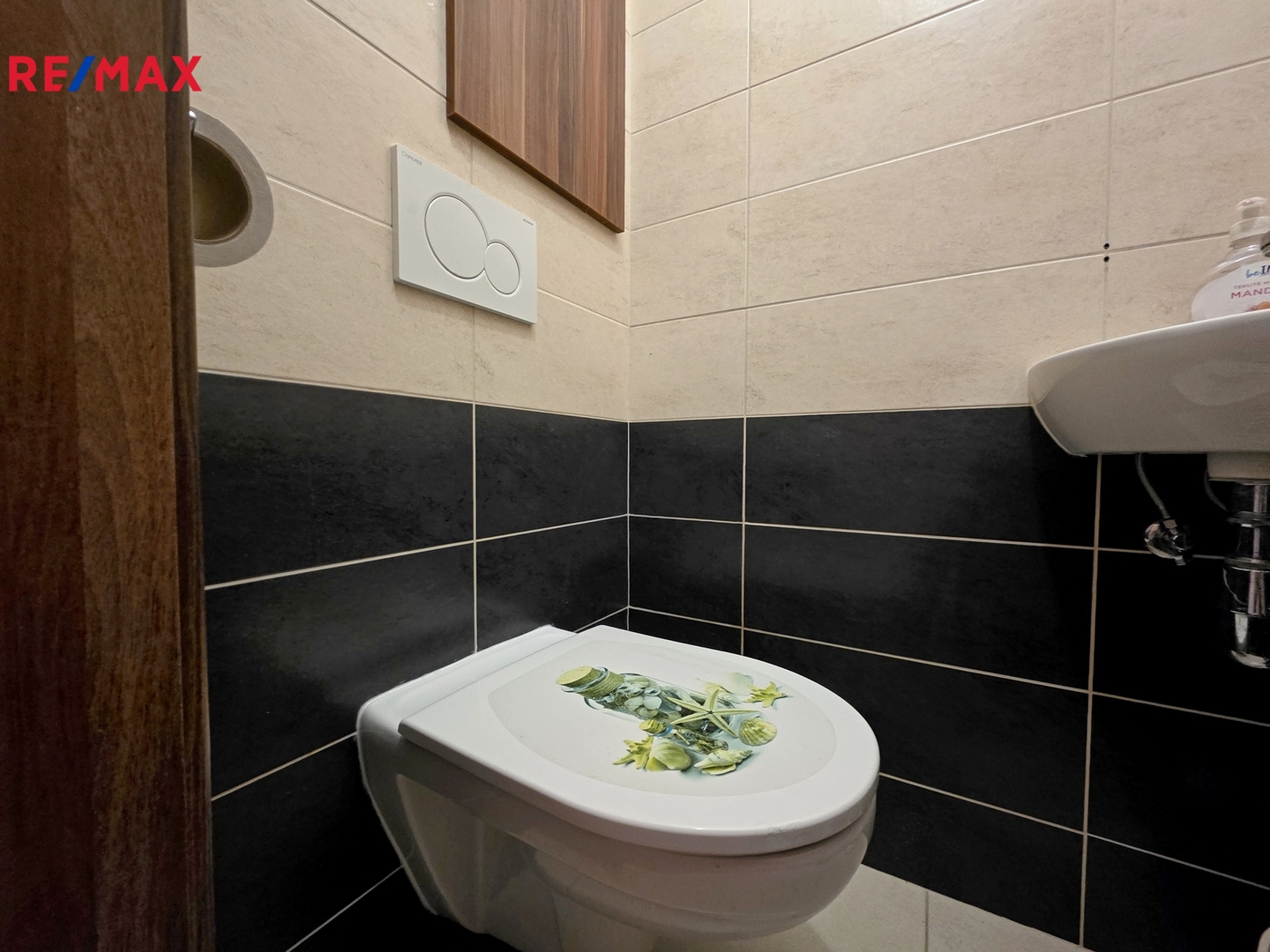 V koupelně je vana, umyvadlo a pračka s horním plněním. Samostatné WC je přístupné z chodby za vstupními dveřmi.