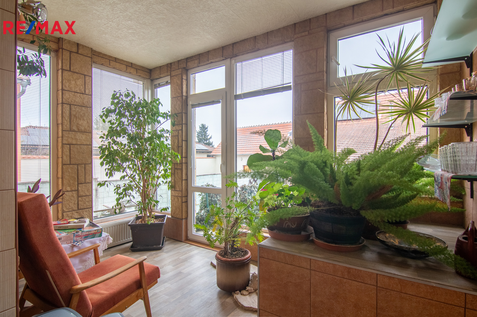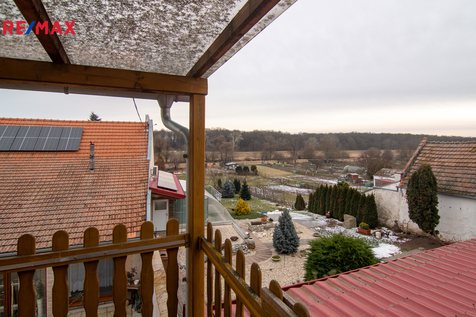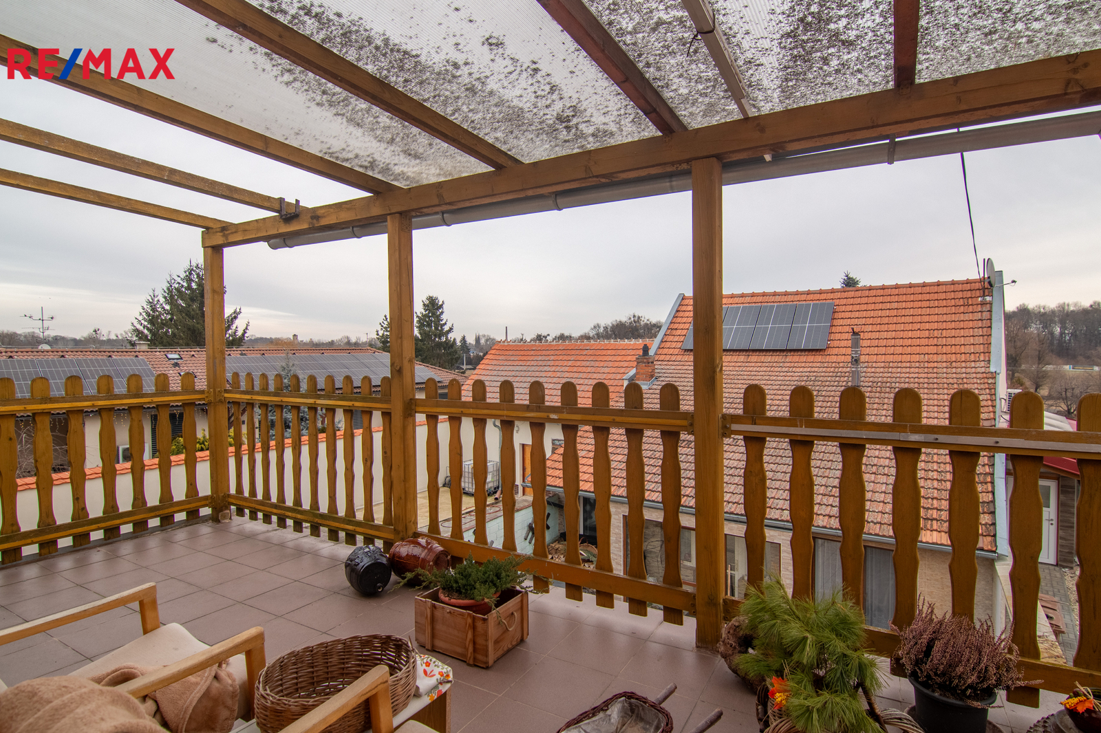 Dům nabízí celkem 5 místností, 2 koupelny (jedna s vanou, druhá se sprchovým koutem), 2 WC, prostornou vstupní halu, zimní zahradu orientovanou do dvora a velkou terasu s krásným výhledem. Je také částečně podsklepený (dostatek úložného prostoru).