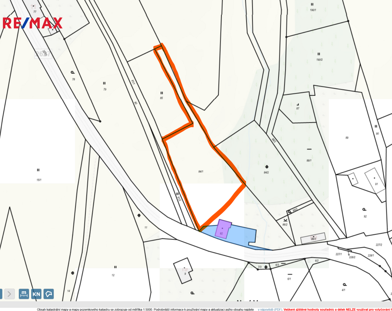 Pozemek bude oddělen od pozemku, který je v současné době součástí rodinného domu, který se také prodává. Přístup a příjezd z veřejné komunikace, stejně tak jako připojení d´na dostupné inženýrské sítě, bude zajištěn věcným břemenem.