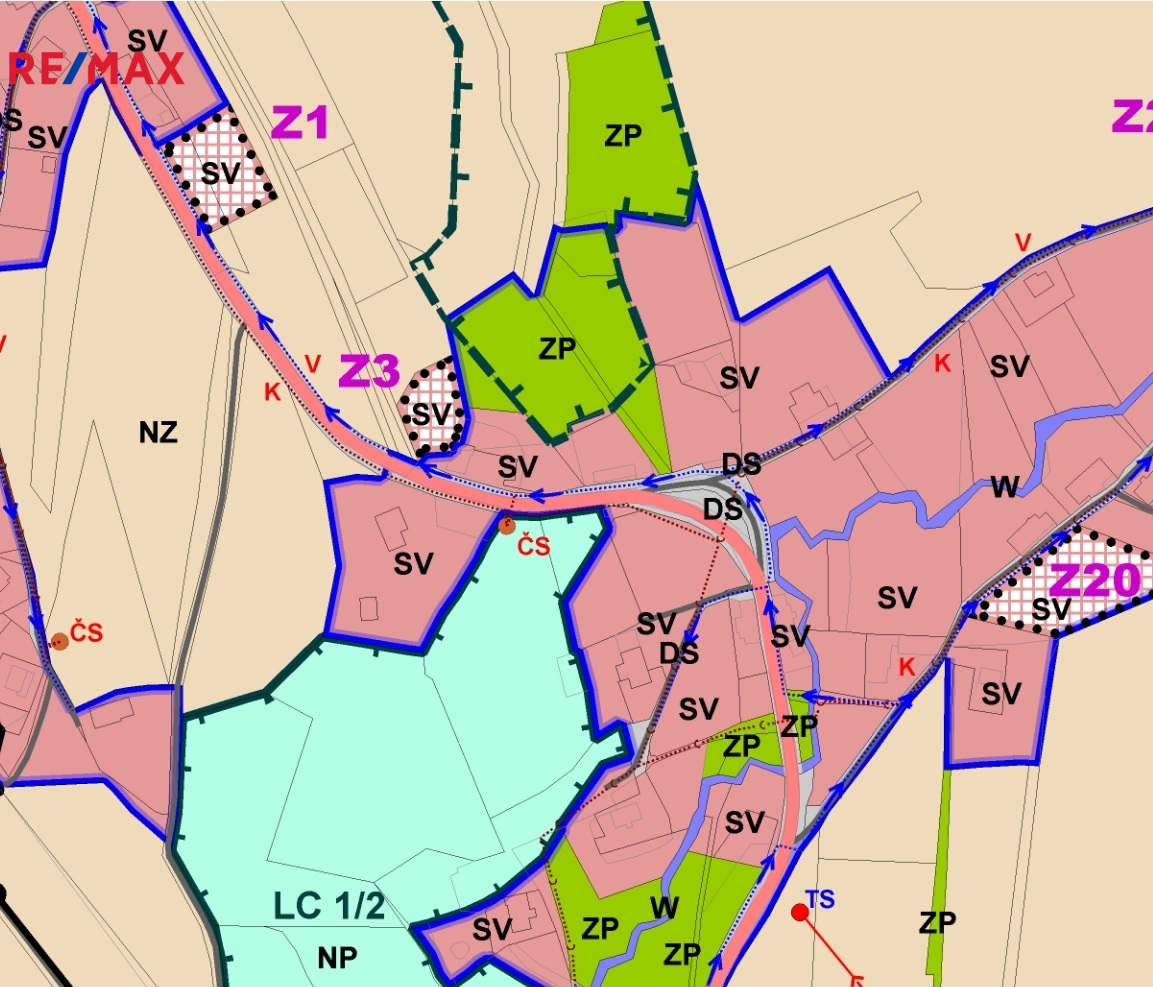 Pozemek je aktuálně veden v katastru nemovitostí jako ostatní plocha/jiná plocha, podle územního plánu obce Volfartice je část pozemku součástí ploch smíšených obytných - venkovských (SV) v zastavěném území a část pozemku je veden v plochách zemědělských. V přilehlé komunikaci vede vodovod, na který se lze napojit. Elektrická přípojka bude na základě žádosti nového vlastníka přivedena na hranici pozemku. Odkanalizování musí být řešeno ČOV.