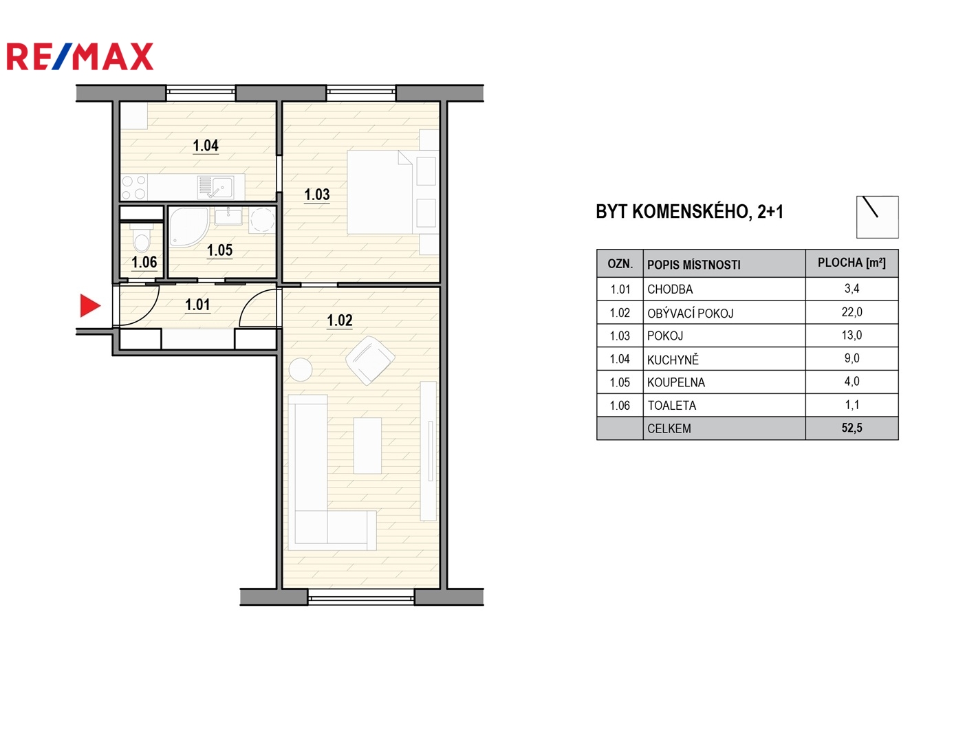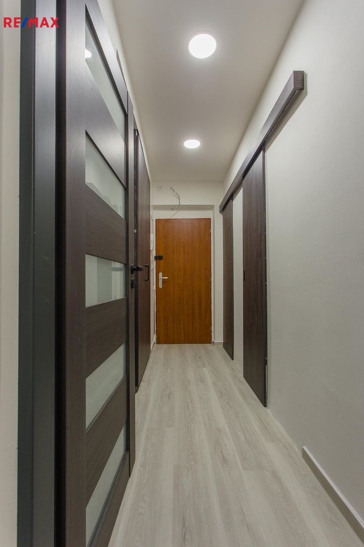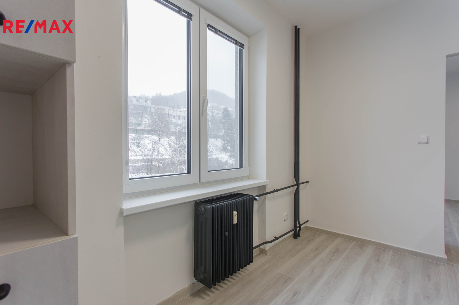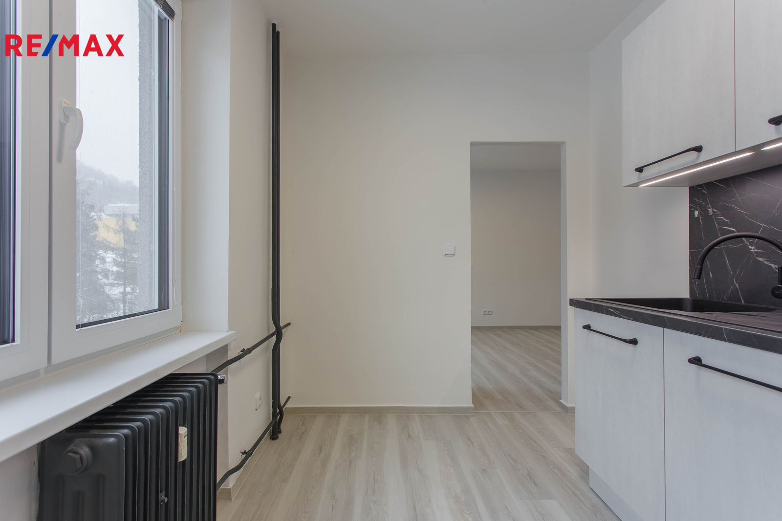 Podlahová plocha bytu je 53 m2, pokoje: 22 m2 a 13 m2, kuchyň 9 m2, předsíň 4 m2. Majitel byt v r.2024 rekonstruoval. Vybudoval zděné jádro, elektro rozvody v mědi (nové jističe), v koupelně je sprchový kout, pračka a sušička Bosch, nové samostatné WC, kuchyňská linka na míru s vestavěnými spotřebiči (indukční deska Electrolux, trouba Mora, digestoř Siemens). V celém bytě jsou podlahy z vinylu (v pokojích původně parkety), plastová okna, k dispozici sklep v suterénu a sklad v přízemí. 2 okna směřují do ulice (směr severovýchod), okno z obývacího pokoje je orientováno do údolí na jihozápad (příjemné vnitřní klima po celý rok). Byt nemá balkon.