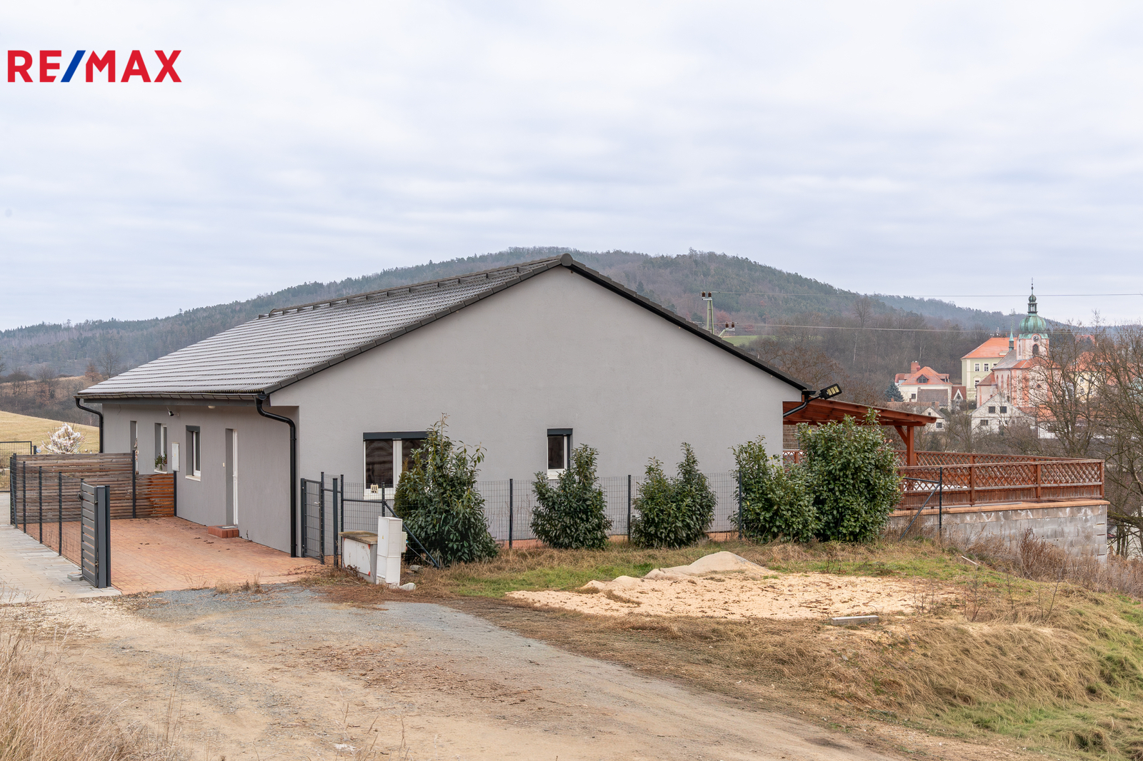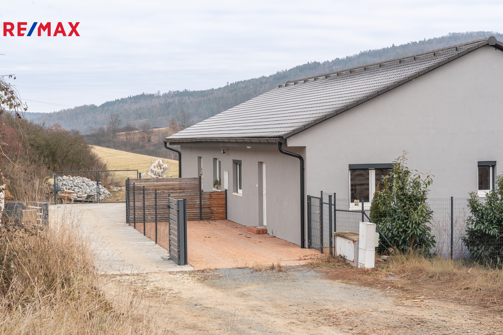 Ve výhradním zastoupení nabízíme ke koupi moderní a útulný bungalov o výměře cca 106 m², umístěný na okraji klidné části obce Nový Knín, v mírném nadhledu nad městem s pěknými výhledy do okolí. Dům je součástí dvojbungalovu, má však samostatné číslo popisné a poskytuje dostatek soukromí.