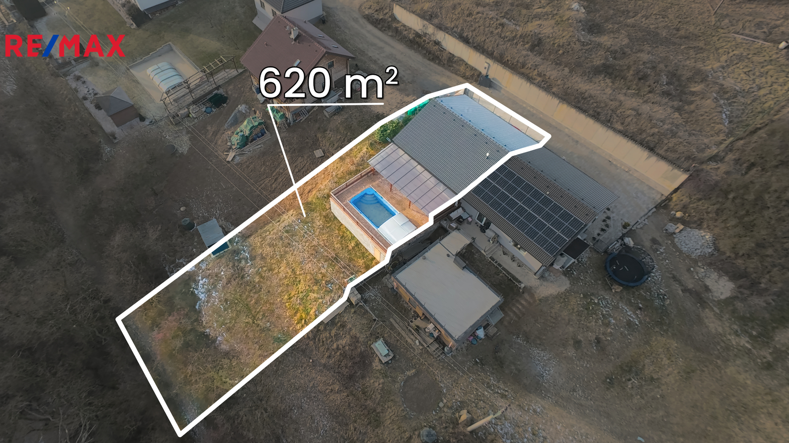 Velikost zahrady včetně navazujících pozemků činí přibližně 620 m² a nabízí dostatek prostoru pro každodenní život, relax i setkávání s rodinou a přáteli.