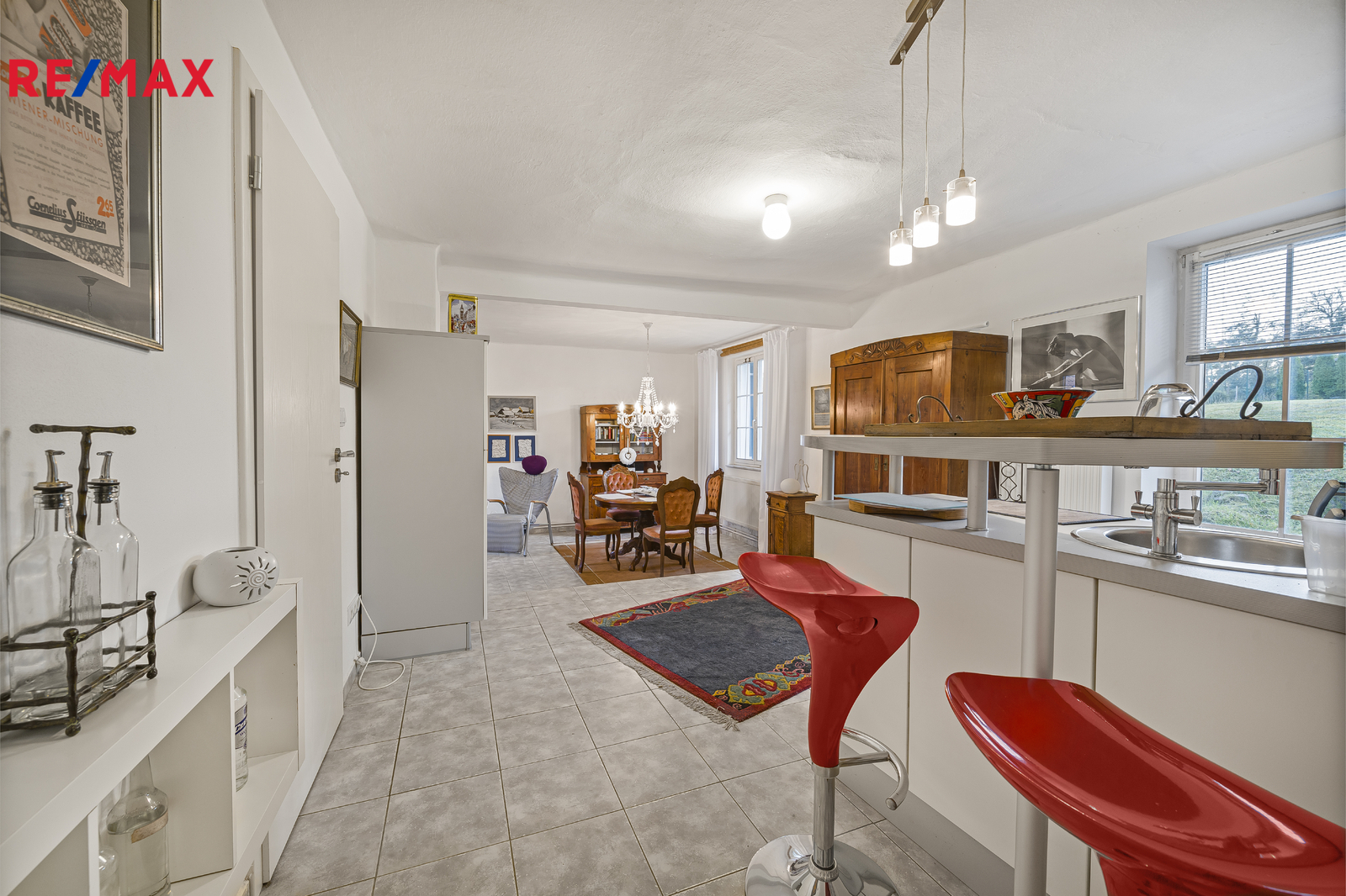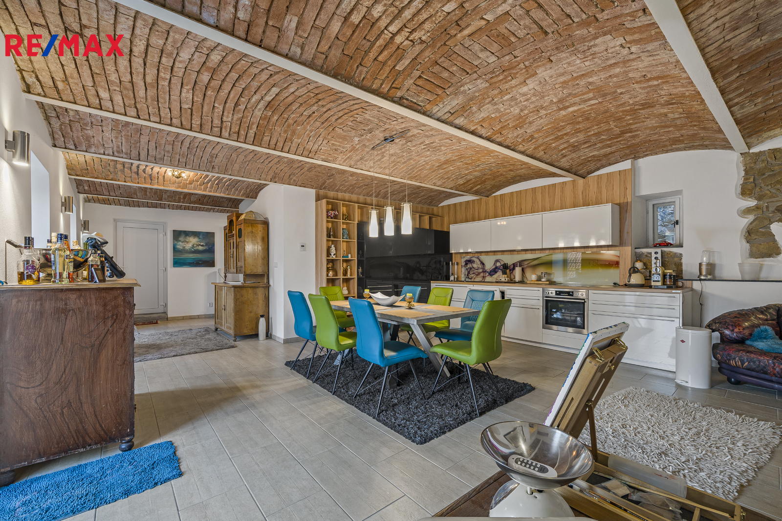 Dispozice domu: První bytová jednotka se nachází v původní historické části celé nemovitosti a skládá se z prostorné kuchyně, velikého obývacího pokoje, ložnice, koupelny s WC a samostatného WC. Druhá bytová jednotka se skládá z obytného pokoje spojeného s kuchyní, ložnice a koupelny s WC. Obě bytové jednotky mají samostatný vstup z uzavřeného dvora, ale jsou též propojeny společnou stodolou, ve které se nachází kotelna. Nemovitost se prodává s kompletním vybavením.