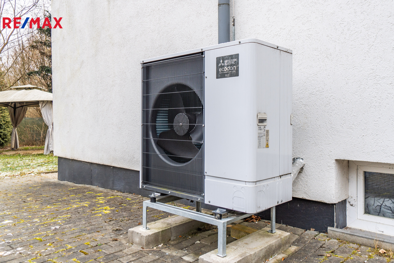 O komfortní vytápění se stará tepelné čerpadlo a ohřev vody řeší bojler. Napojení na inženýrské sítě: obecní vodovod, elektřina a kanalizace; pro zalévání je na pozemku kopaná studna.