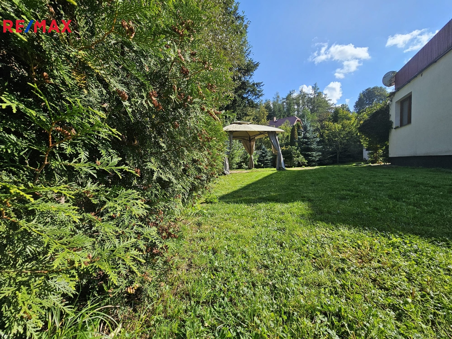 Zahrada je oplocená a díky vzrostlé zeleni poskytuje přirozené soukromí. Pro děti je to skvělé místo na hry, pro dospělé klidná oáza na odpočinek. Na pozemku najdete také užitkové výsadby a ovocné prvky, které dělají ze zahrady nejen hezký, ale i praktický prostor pro každodenní radost.