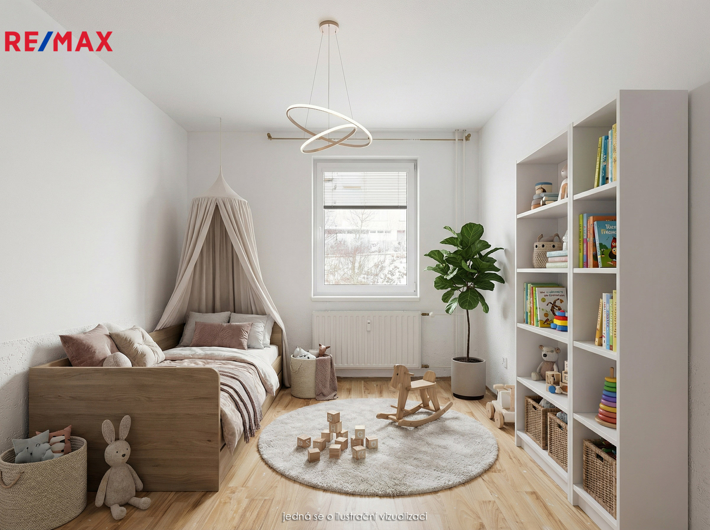 Byt má zděné jádro a velmi povedené dispoziční řešení: prostorná předsíň s dostatkem úložného prostoru, samostatná toaleta, koupelna s vanou, kuchyně, obývací pokoj, ložnice a dětský pokoj. Velkou výhodou je příjemný balkón pro relaxaci. K bytu náleží dvě sklepní kóje v přízemí domu a součástí domu je společná kolárna a sušárna. Byt má velmi nízké provozní náklady, což je velká přednost jak pro vlastní bydlení, tak i jako investici.