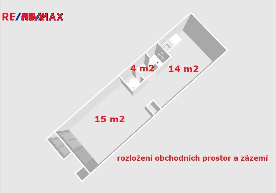 Za příznivý měsíční nájem získáte rozdělený prostor s novým sociálním zázemím, výlohou, vstupem z ulice s roletou a vlastním měřením spotřeby energií.