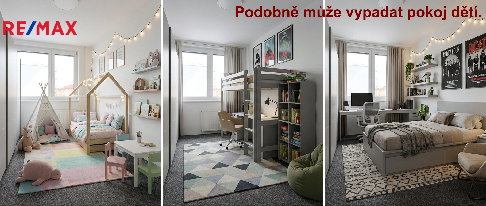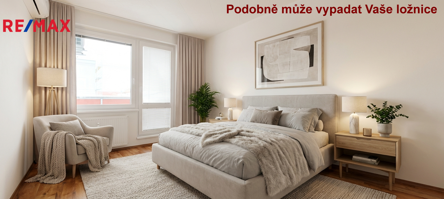 • Ložnice (12 m²) se vstupem na balkon (3 m²) a druhý pokoj (11,5 m²), který díky skříním po celé délce pokoje poslouží jako perfektní dětský pokoj nebo pracovna.
