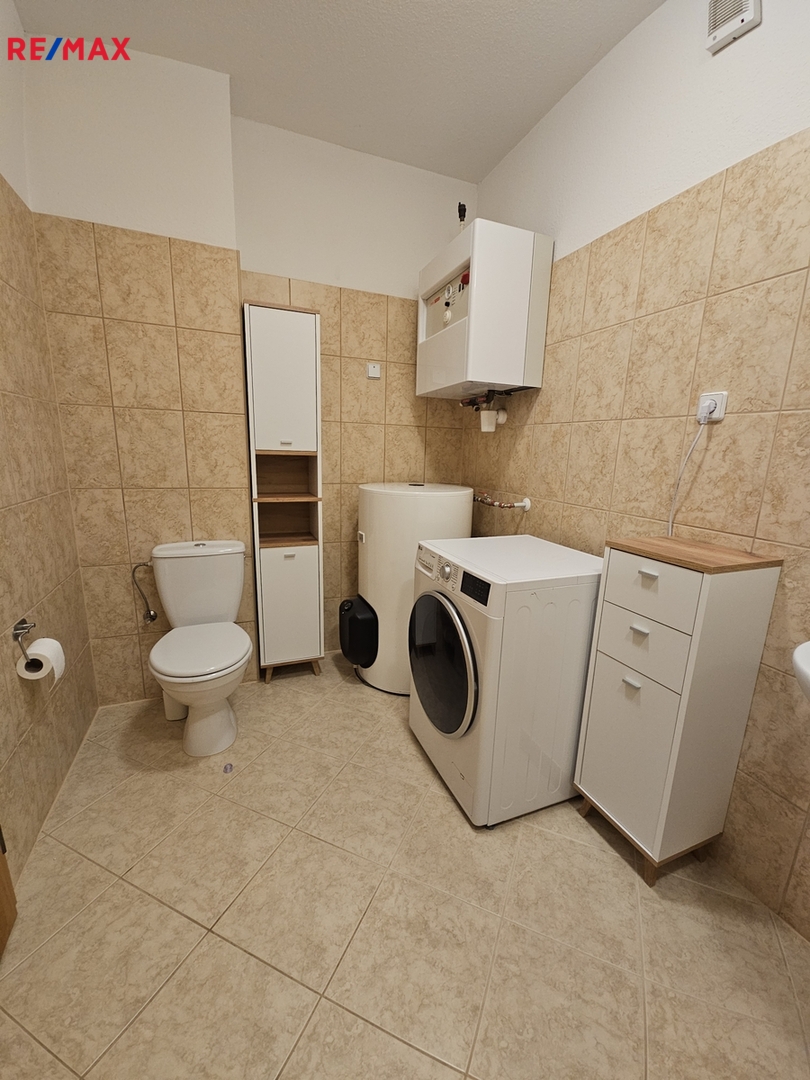 Byt se nachází v 1. patře orientovaný na jiho -západ. Je vybaven novou kuchyňskou linkou s vestavěnými spotřebiči Whirpool a Gorenje včetně lednice s mrazákem. V koupelně jsou skřínky, vana, WC a pračka se sušičkou značky LG- nová.