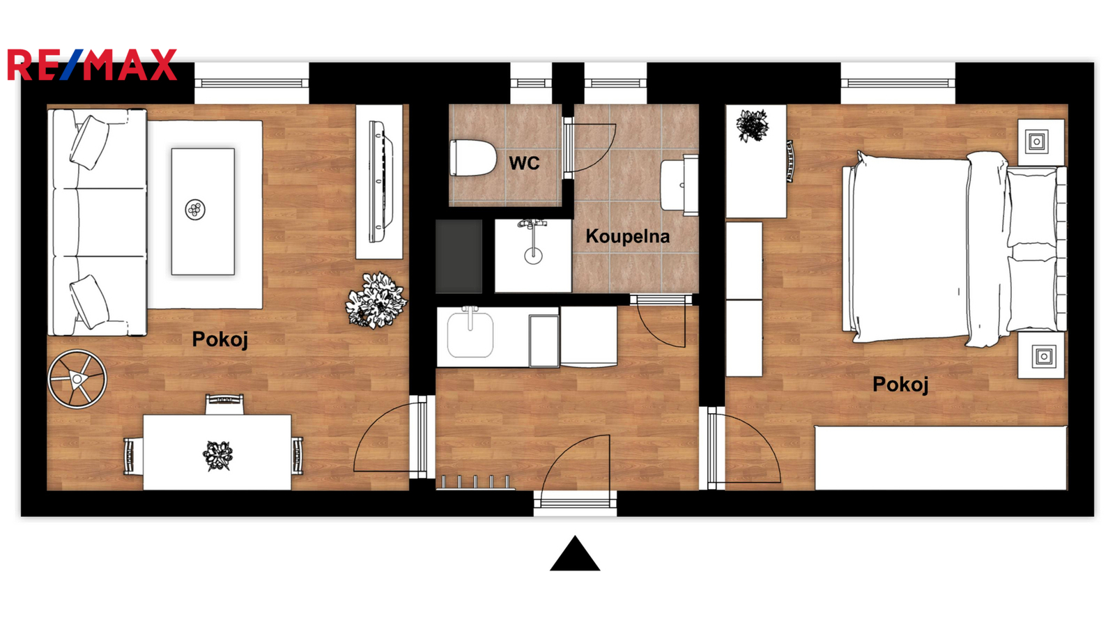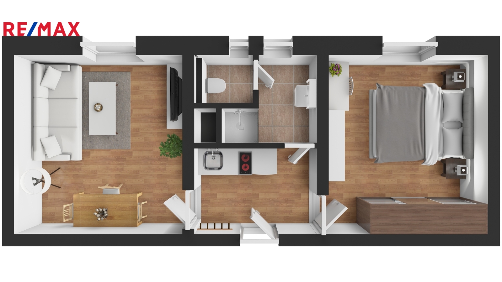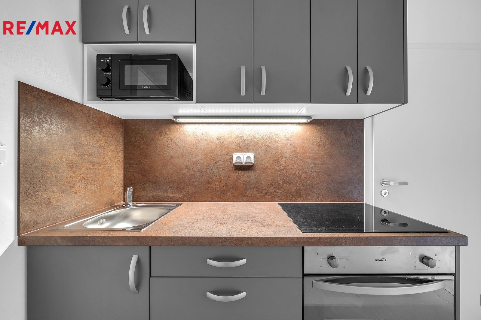 Jednotka o dispozici 2+1 a velikosti 40m² se skládá z kuchyně včetně spotřebičů (trouba, varná deska, lednice, mikrovlná trouba), koupelny (sprchový kout, toaleta, pračka) a dvou pokojů, které čekají na vaše vybavení.