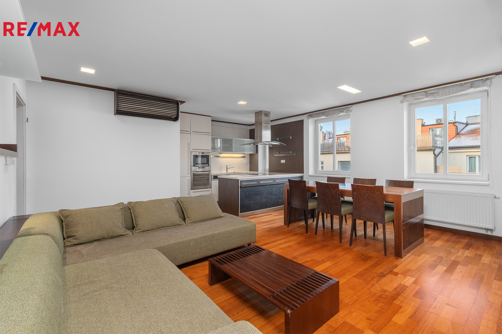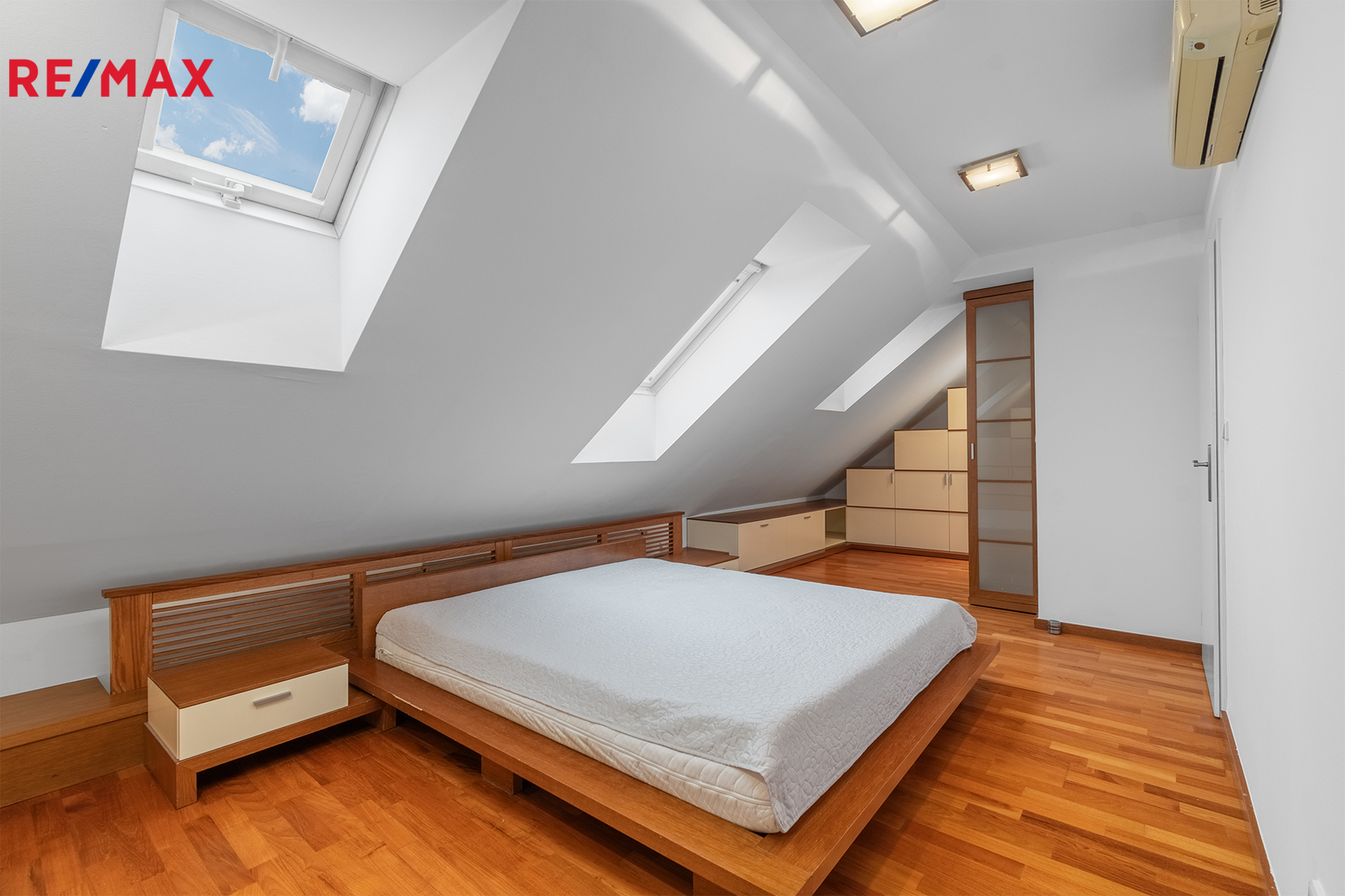 Všechny obytné místnosti v obou patrech jsou vybaveny klimatizačními jednotkami, které zajišťují dokonalé pohodlí bez ohledu na počasí a roční období. Vytápění bytu prostřednictvím radiátorů a ohřev teplé vody zajišťuje plynový kotel, což poskytuje efektivní, spolehlivý a komfortní provoz po celý rok.