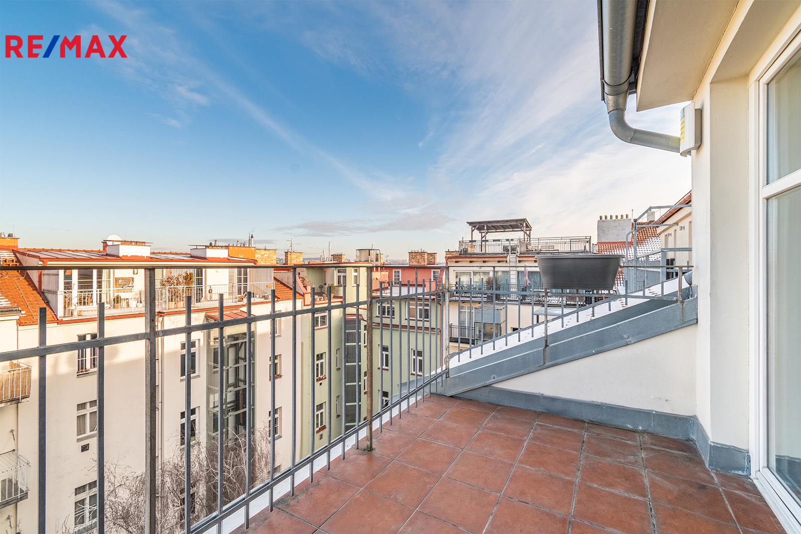 Tento mezonetový byt se nachází v 6. a 7. nadzemím podlaží bytového domu s výtahem. K ploše bytu 107 m2 dále náleží vlastní terasa 6 m2 a zděný sklep v suterénu domu o výměře 6 m2.