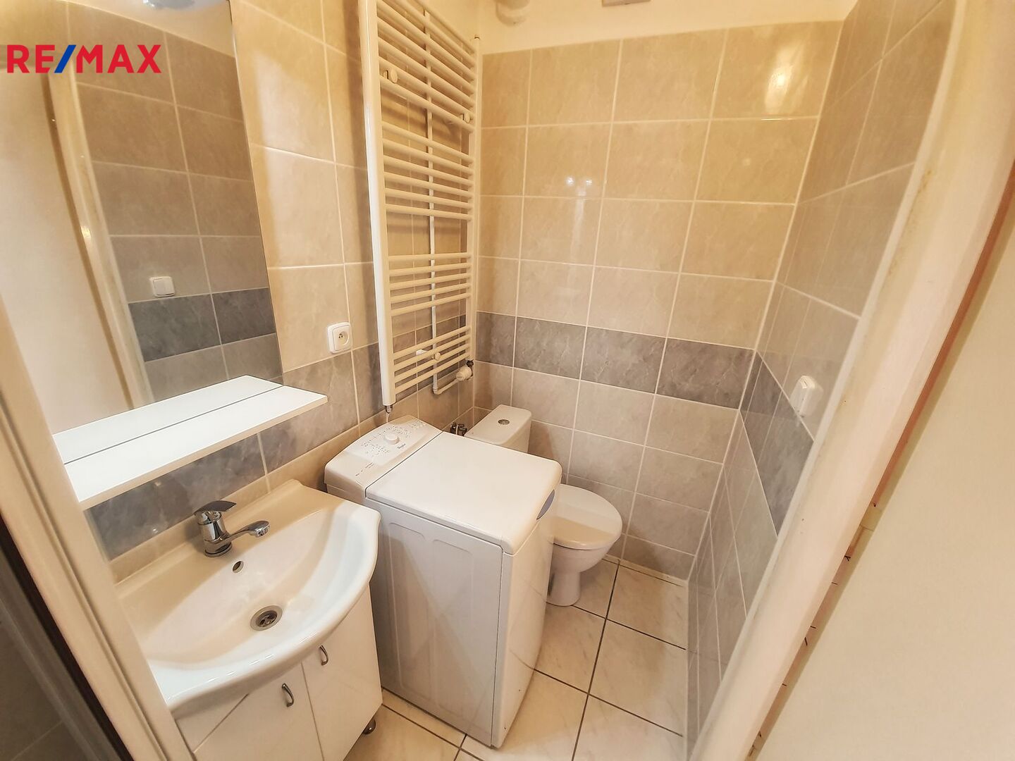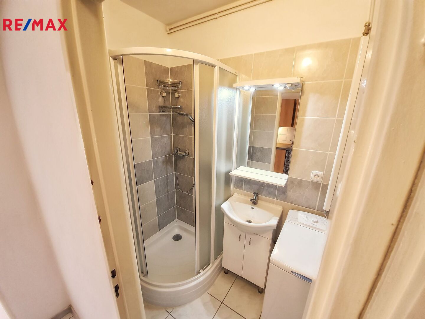 Byt je po rekonstrukci - komplet nová koupelna (obklady, WC, sprchový kout 90x90 cm, pračka, koupelnová skříňka).