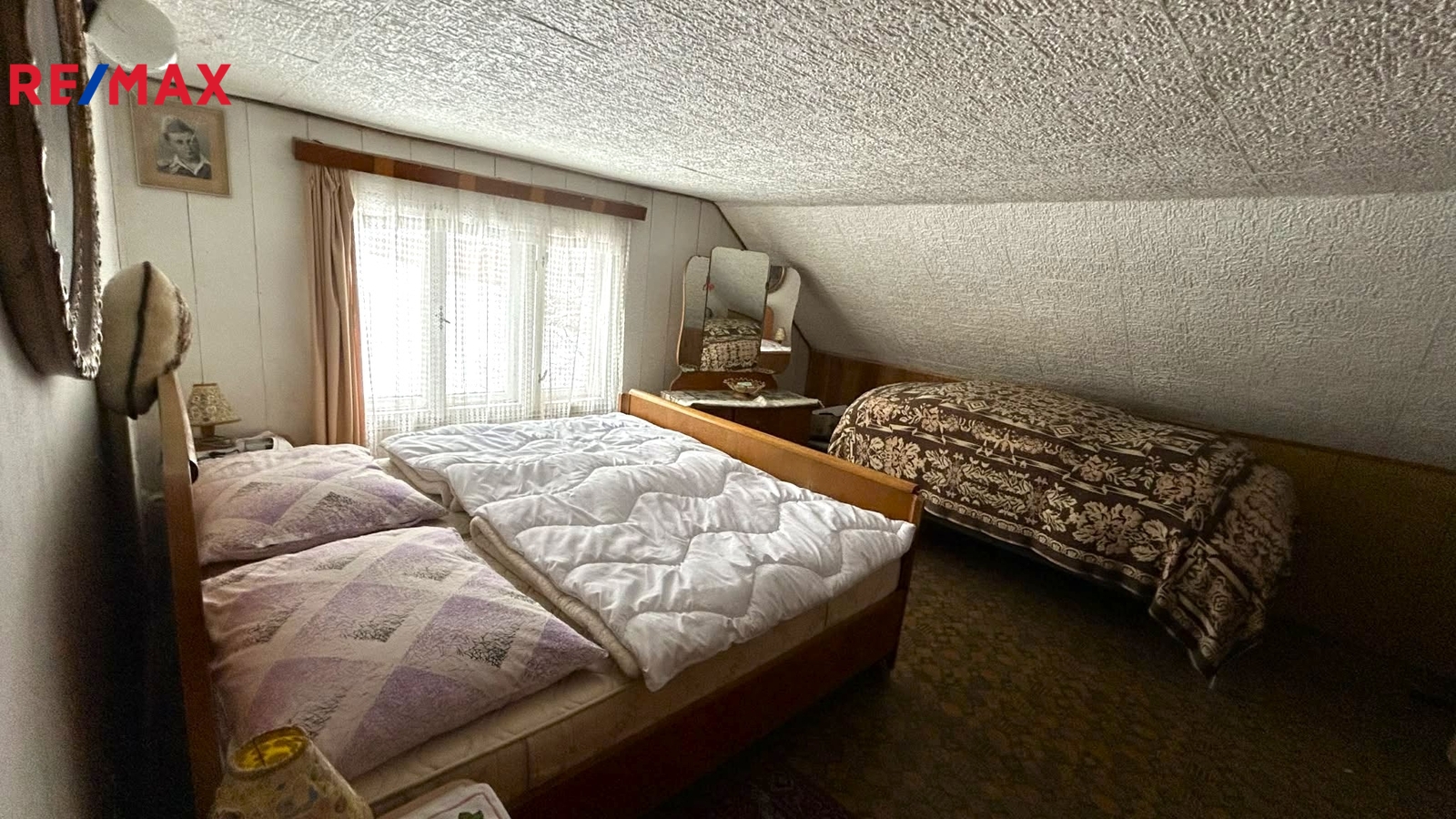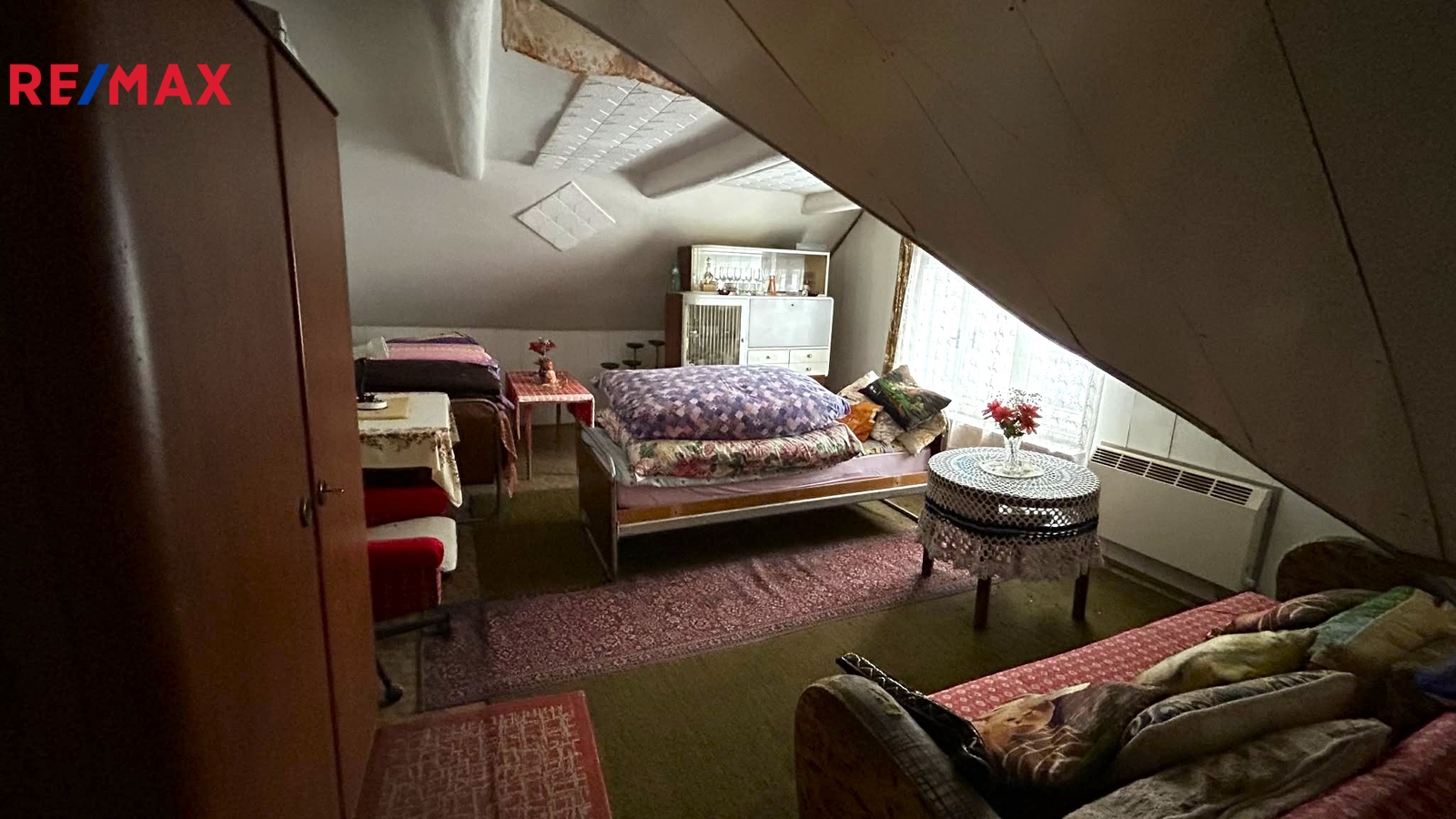 Dispozice domu: V přízemí, kde se nachází vstupní chodba je též obývací pokoj, kuchyň, prostorná koupelna, samostatné WC a vstup do sklepa a zadní vchod na zahradu. V podkroví se nachází malá hala a dvě další místnosti. Na zahradě vedle garáže stojí kůlna. Nemovitost je ve stavu před kompletní rekonstrukcí.