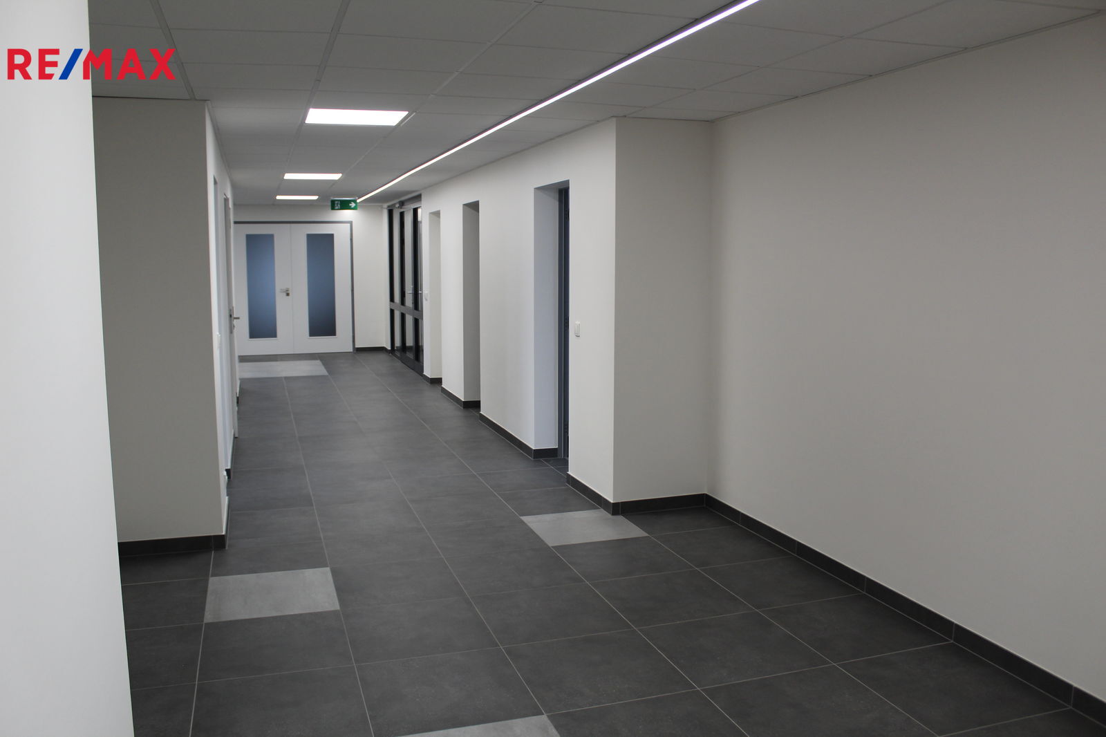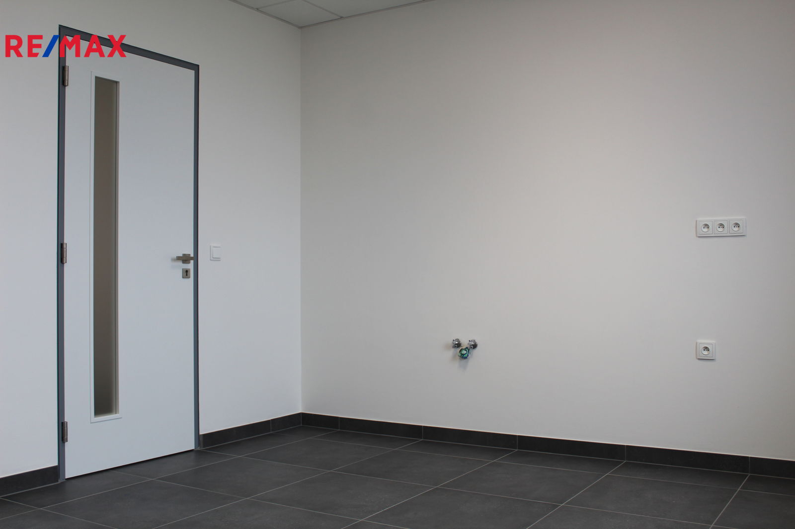 nabízíme Vám nové nevybavené prostory k pronájmu v Dolních Měcholupech (ulice Ke kablu) s okamžitou využitelností. Dohromady se jedná o dvě kanceláře ve třetím nadzemním podlaží (bez výtahu), které se dají pronajmout jako jeden celek, nebo jednotlivě. Společné prostory tvoří chodba/hala, kde se dá po domluvě s majitelem objektu dopronajmout extra prostor u zdí (tzv. niky), který se dá využít např. k trvalému umístění vestavených skříní či tiskáren atp. Další společné prostory tvoří toalety (dámské v bílé barvě a pánské v černé) a kuchyňka.