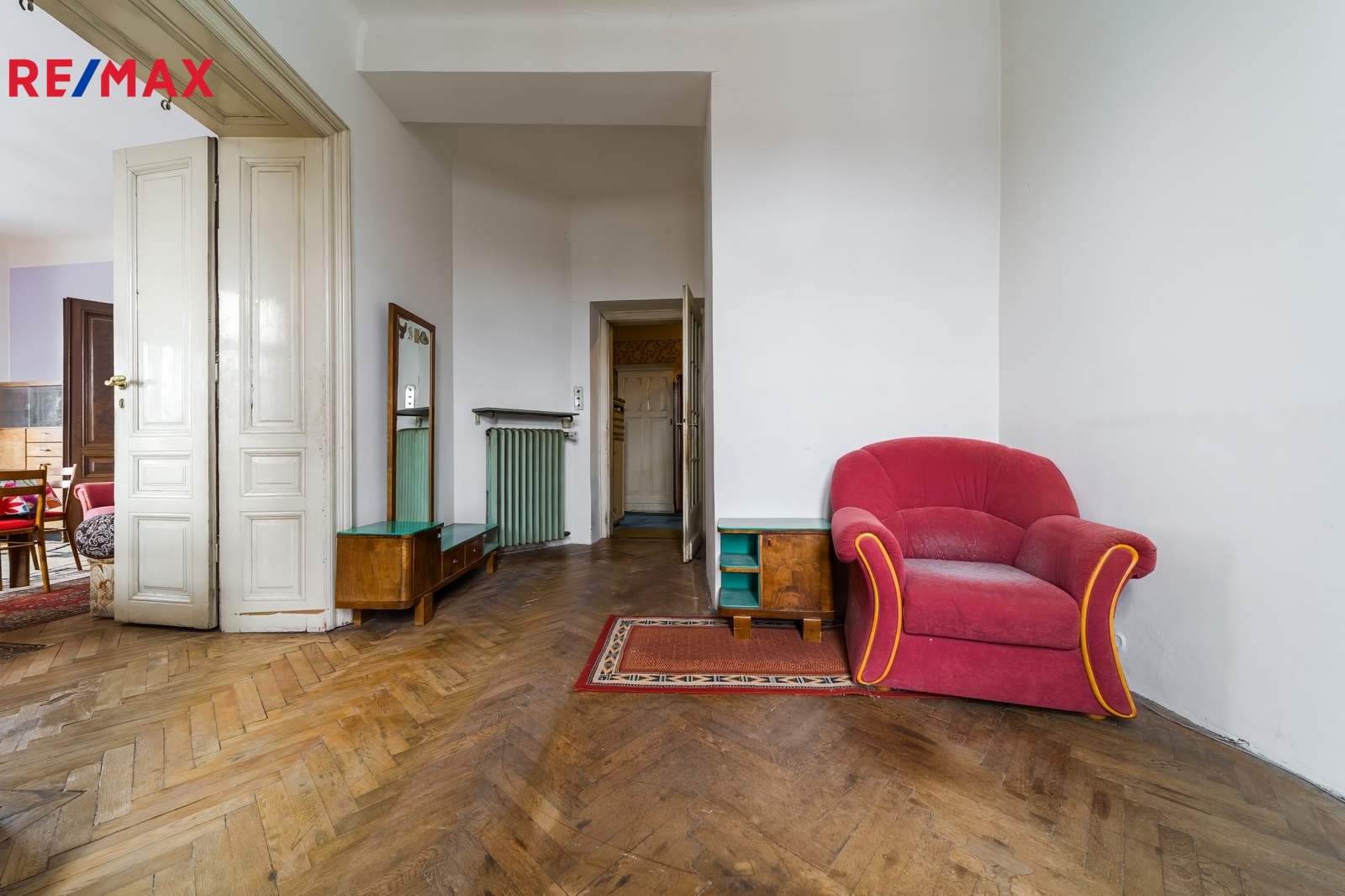 Stav: před rekonstrukcí – Je v původním stavu, připravený k rekonstrukci – ideální volba pro ty, kteří hledají prostor, kde si mohou vše navrhnout podle vlastních představ. Byt má dva samostatné vchody, jeden na každém patře, dva elektroměry a dva plynoměry, což připouští možnost rozdělení na dvě samostatné bytové jednotky.