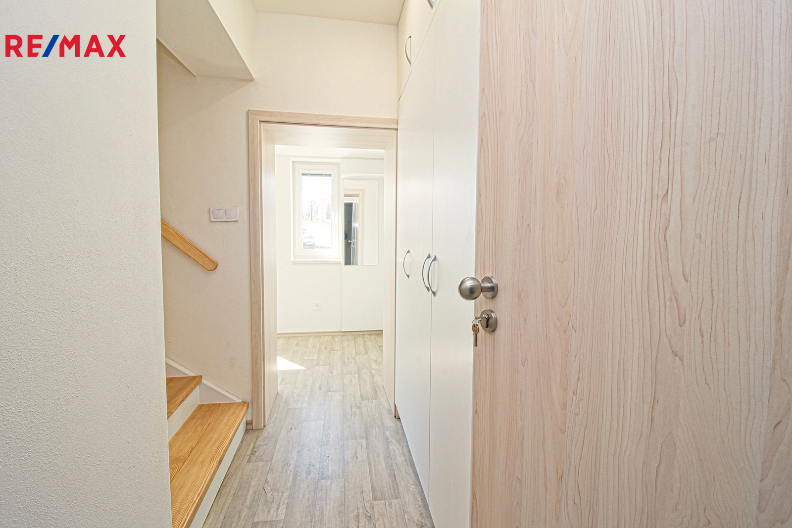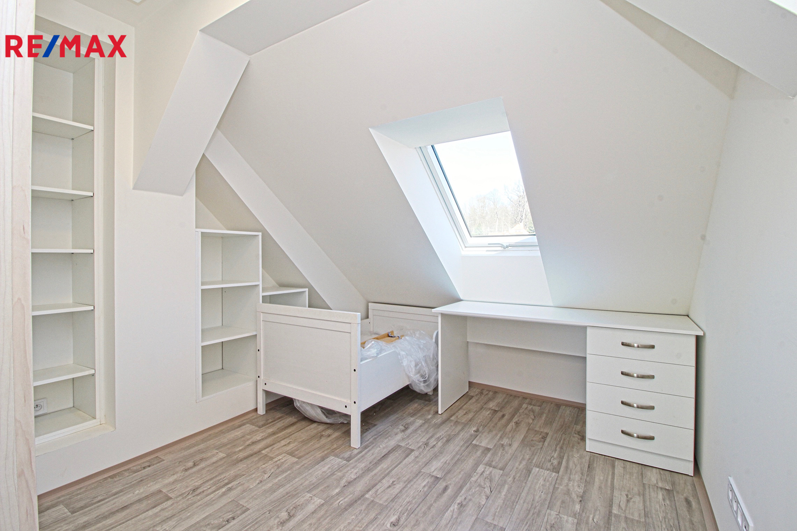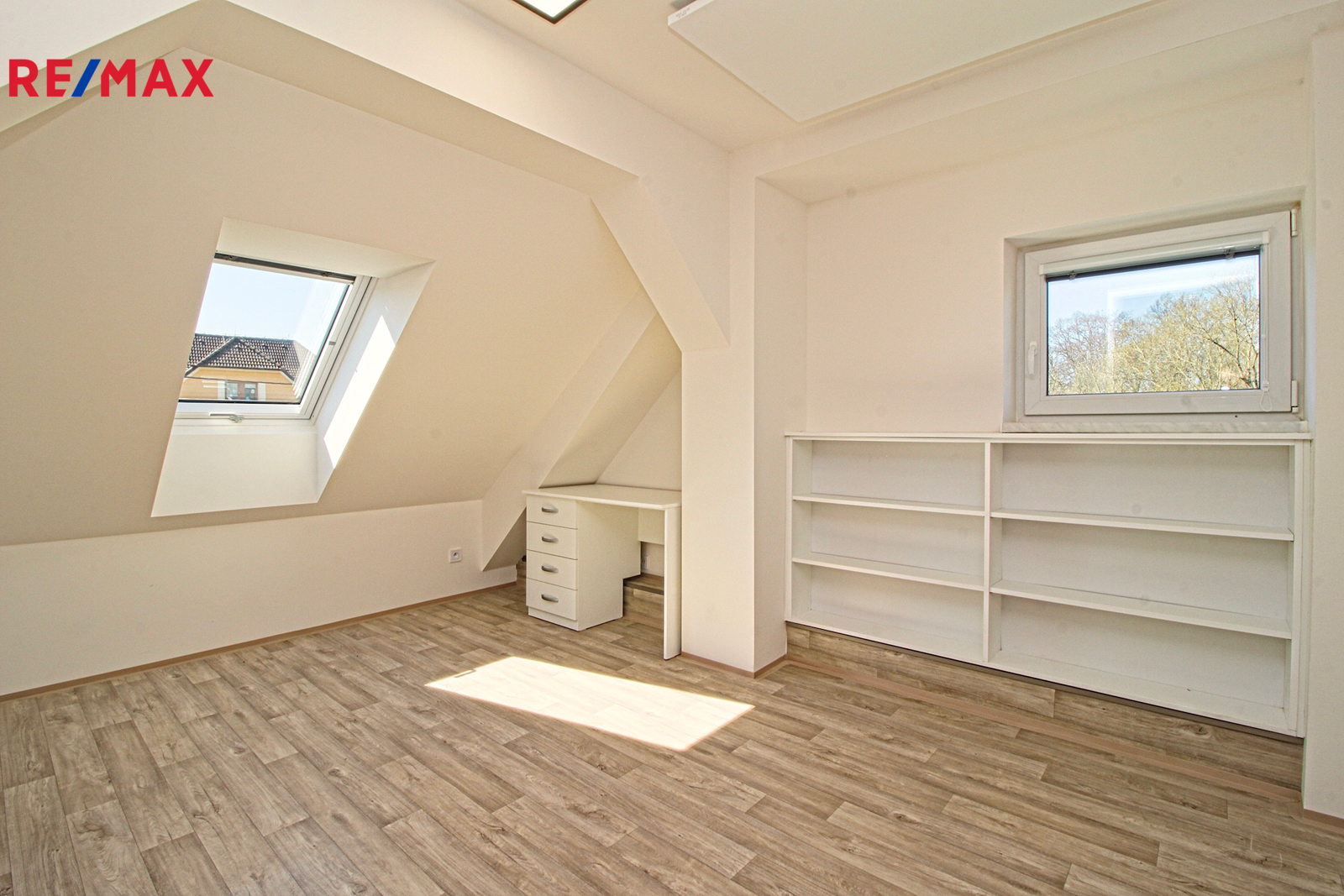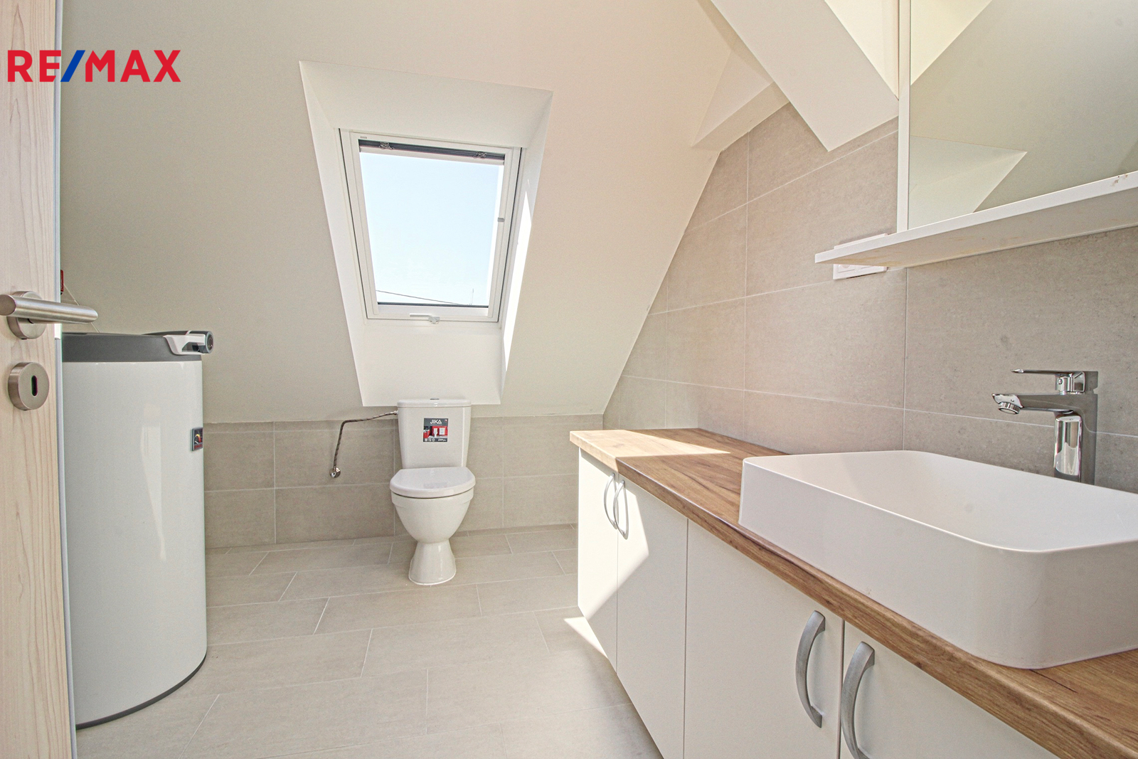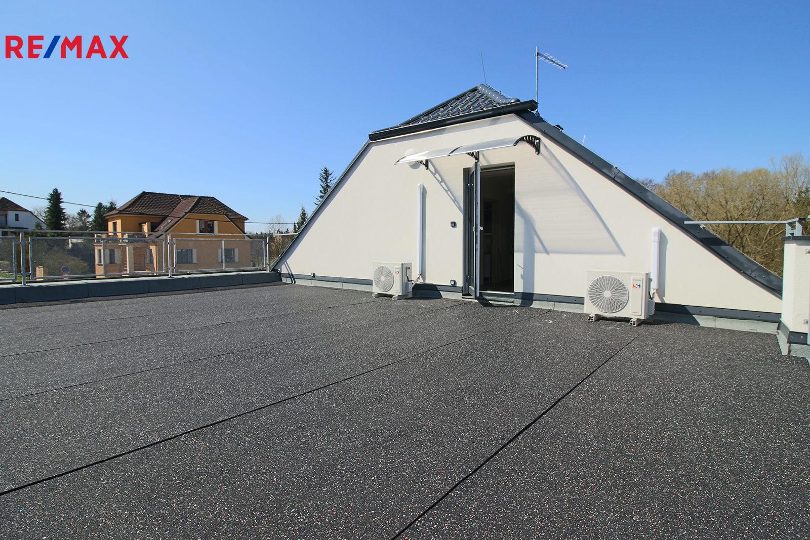 Nabízíme k pronájmu atypický byt 3+kk o výměře 60 m2, který začíná ve druhém nadzemním podlaží předsíní se šatnou a pak pojímá prostor v podkroví. Prostor je vybaven klimatizačními jednotkami. Jeho nespornou výhodou je vlastní soukromá terasa přístupná z chodby bytu. Jedná se o kompletně nově zrekonstruovaný dům. Ohřev TUV zajišťuje tepelné čerpadlo. Dům je dále napojen na obecní vodovod a kanalizaci. Majitel si přeje peněžitou jistotu ve výši dvou nájmů. Odměna realitní kanceláři činí výši nájmu + DPH. V bytě ještě nikdo nebydlel, tak nejsou zřejmé náklady spojené s užíváním bytu (odhadem měsíčně elektřina cca. 3.000 Kč a ostatní 1.200 Kč - záleží na počtu osob). K dispozici je možnost parkovat uvnitř areálu až dvěma vozy. Byt je vybaven kuchyňskou linkou na míru s myčkou, el. troubou, indukční deskou a digestoří. Zbývající vybavení deklarují přiložené fotografie. V případě zájmu volejte makléři nabídky.