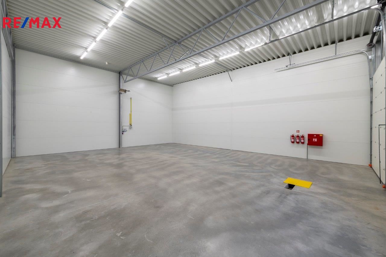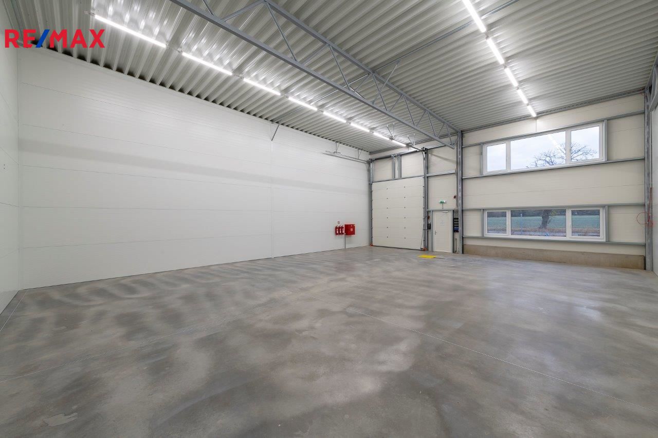 Aktuálně nabízíme jednu volnou komerční halu o rozloze 180 m2 - rozměry 12x15m s možností nastěhování 1.3. 2026. Možnost doplnit halu kancelářskými prostory se sociálním zařízením formou stavebních buněk, nebo formou lehké konstrukční vestavby. V hale jsou připraveny přípojky kanalizace, vodovodu, samozřejmostí je elektřina 220 V i 380. Hala má instalovanou klimatizaci pro udržování konstantní teploty. Hala má namontována podružná měřidla na elektřinu, vodu a plyn. V místě možnost připojení na internet - optický kabel a pult centrální ochrany - Jablotron nebo lokální poskytovatel služby. Led osvětlení naddimenzované - 260lx v 80cm od země. Vytápění plynem.