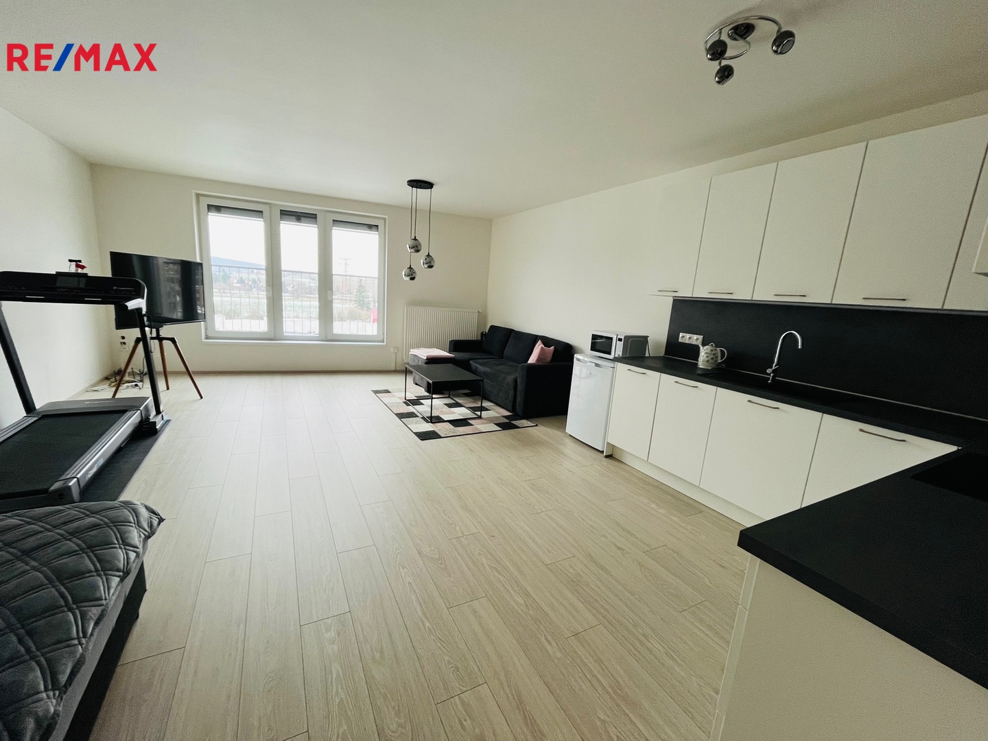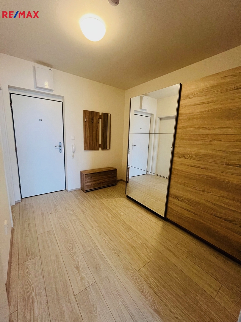 Byt se nachází v novostavbě a je orientovaný na jih, takže je zde zajištěno dostatek světla a pod okny jsou jen malé rodinné domky, díky nímž je zajištěný hezký a ničím nerušený výhled. Předokenní žaluzie nabízejí flexibilitu mezi dostatkem světla a potřebou zatemnění podle vašich preferencí.