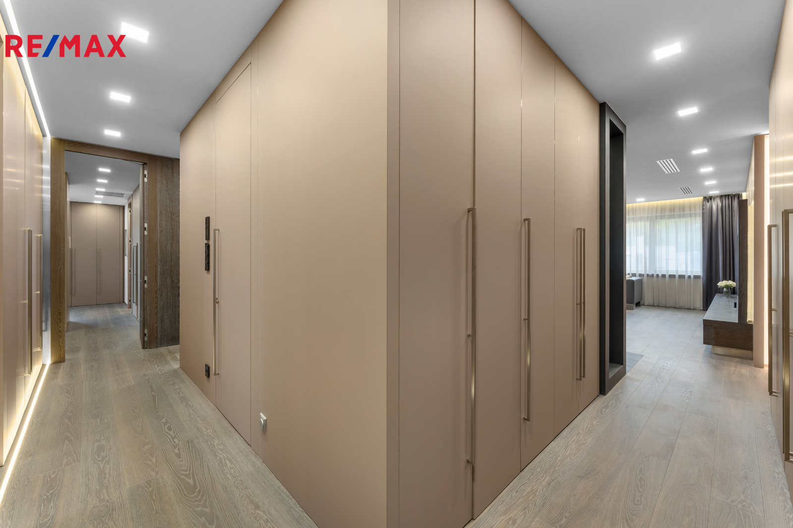 Výměra samotného bytu činí více než 260 m2. Dispozičně je řešen jako 5+kk. Všude najdeme vestavěný nábytek, do kterého jsou zakomponovány interiérové dveře. Ke třem pokojům patří koupelna s velkým sprchovým boxem, volně stojící vanou a WC. Samostatnou kapitolou je pak master bedroom s obrovskou šatnou, koupelnou s vanou s výhledem do údolí či vlastní terasou. Velký obývací pokoj disponuje krbem na dřevo a neviditelnými reproduktory ve stropě, jídelní částí, na kterou navazuje další terasa s vyhříváním či ozvučením a kompletně vybavená kuchyně. K dispozici je dále toaleta pro hosty a hlavně spousta úložného prostoru prakticky na všech stěnách.