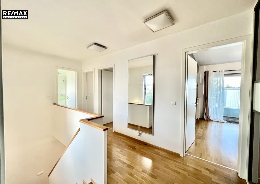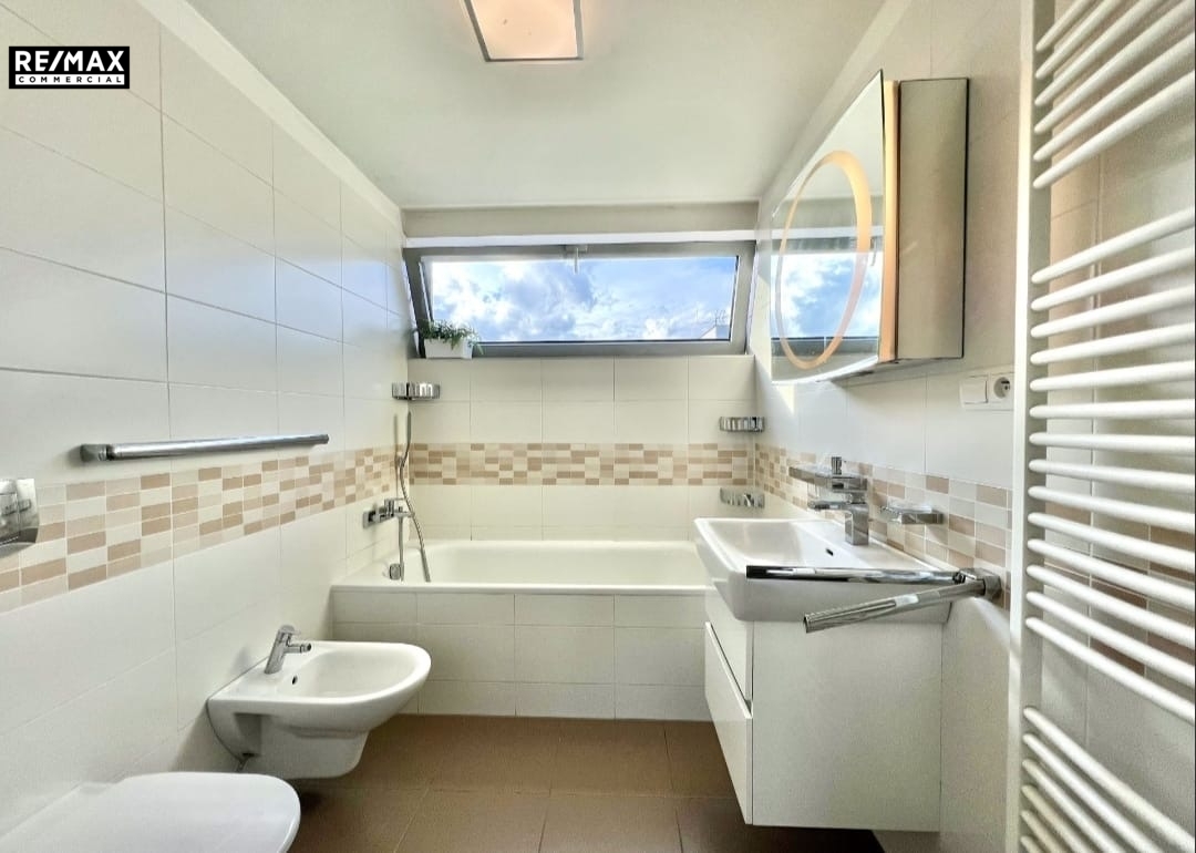 V patře se nachází tři samostatné ložnice, dvě koupelny, technická místnost a balkon přístupný z hlavní ložnice. Praktické vestavěné skříně poskytují dostatek úložného prostoru.