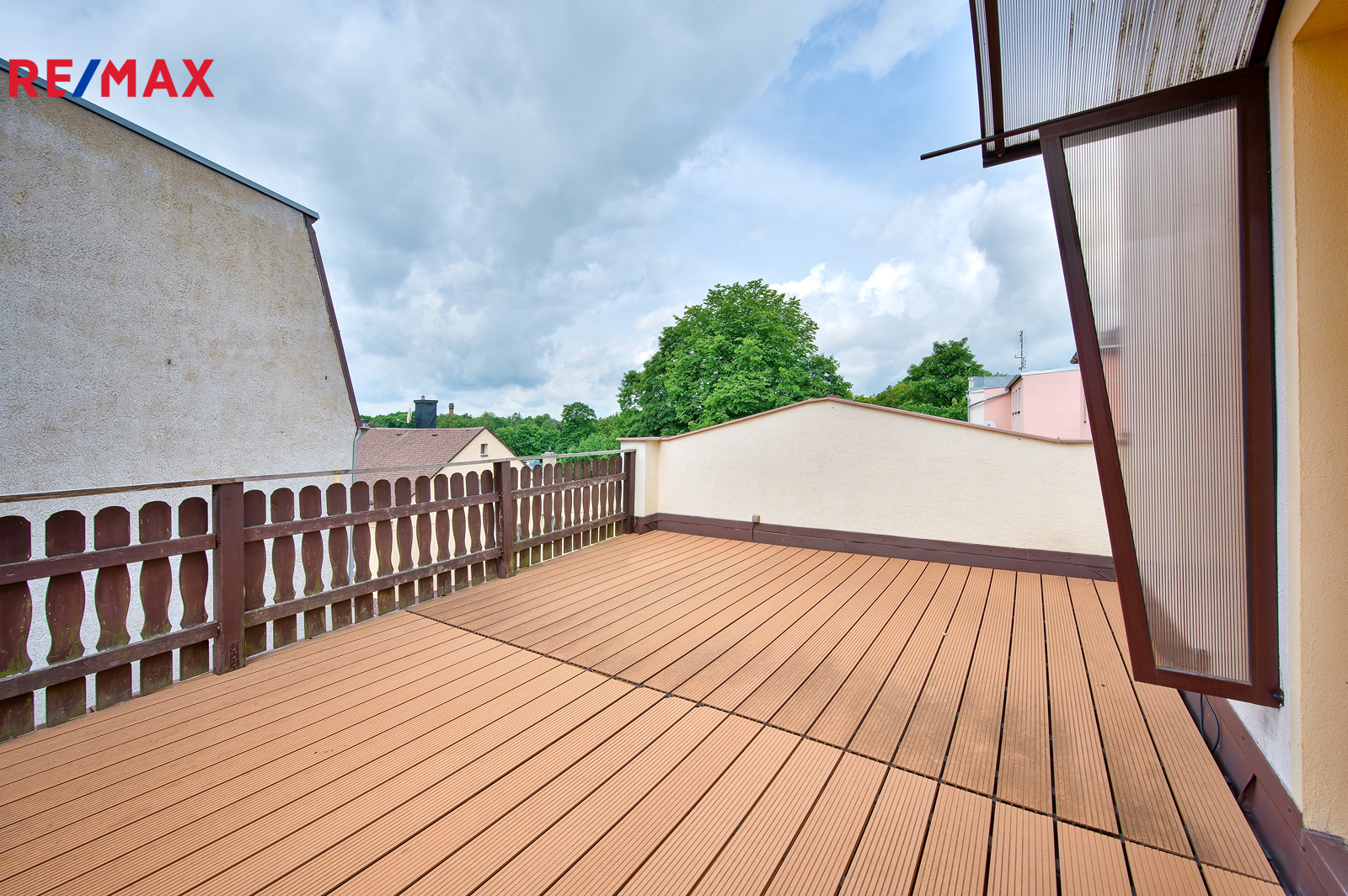 Ve výhradním zastoupení nabízíme k pronájmu byt s dispozicí 2+1 a terasou o podlahové ploše 80 m2 v osobním vlastnictví, který se nachází v 3.NP (2.patře) cihlového domu o 4. podlaží bez výtahu. Byt je ve velmi hezkém stavu s jedinečnou terasou, díky které se zásadně liší od všech ostatních. K bytu náleží sklepní kóje. Klidný a čistý dům s pouze čtyřmi byty zajistí poklidné bydlení, s veškerou občanskou vybaveností na dosah ruky.