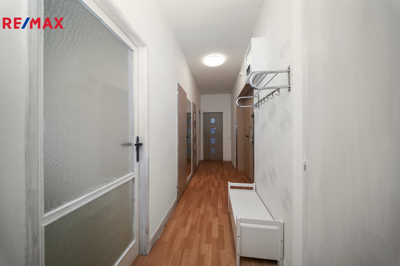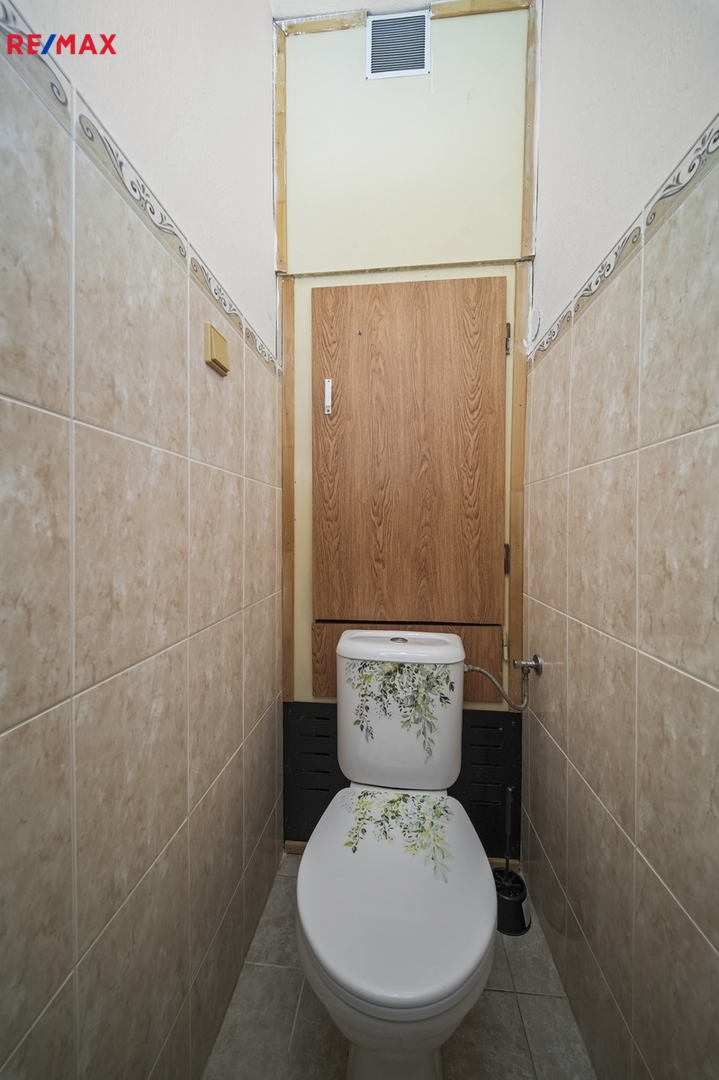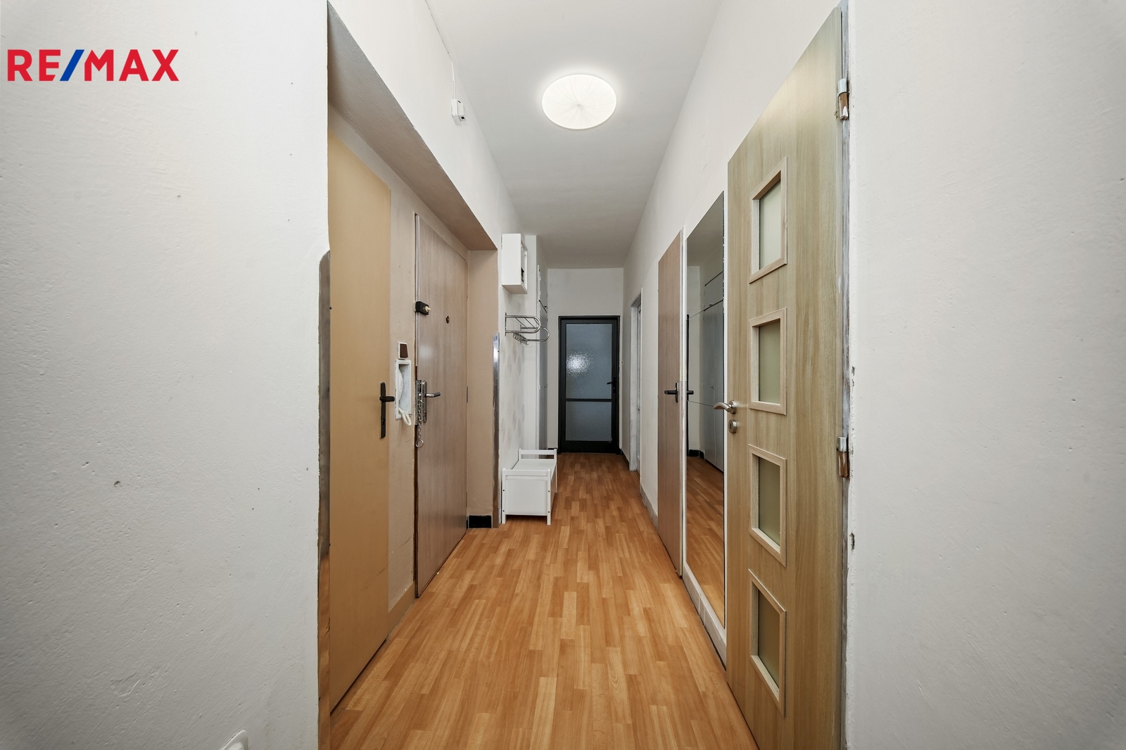 Součástí bytu je i praktická komora a úklidová skříň, které rozšiřují úložné prostory.