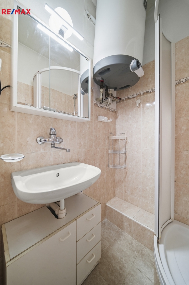 Koupelna je vybavena sprchovým koutem, toaleta je pak umístěna samostatná.
