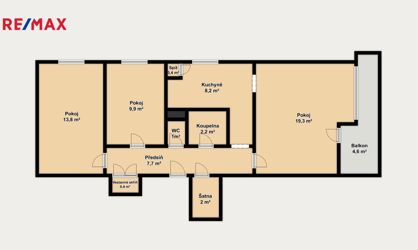 Dominantou obývacího pokoje je výstup na lodžii o výměře 4,6 m², která nabízí příjemný prostor k relaxaci.