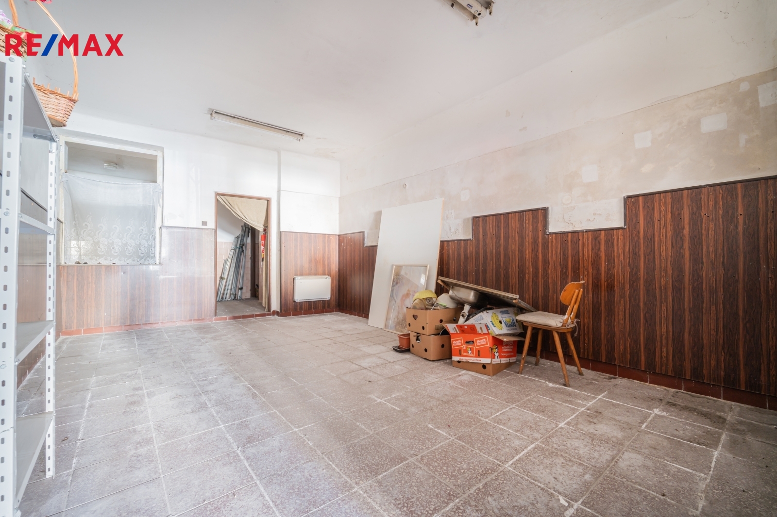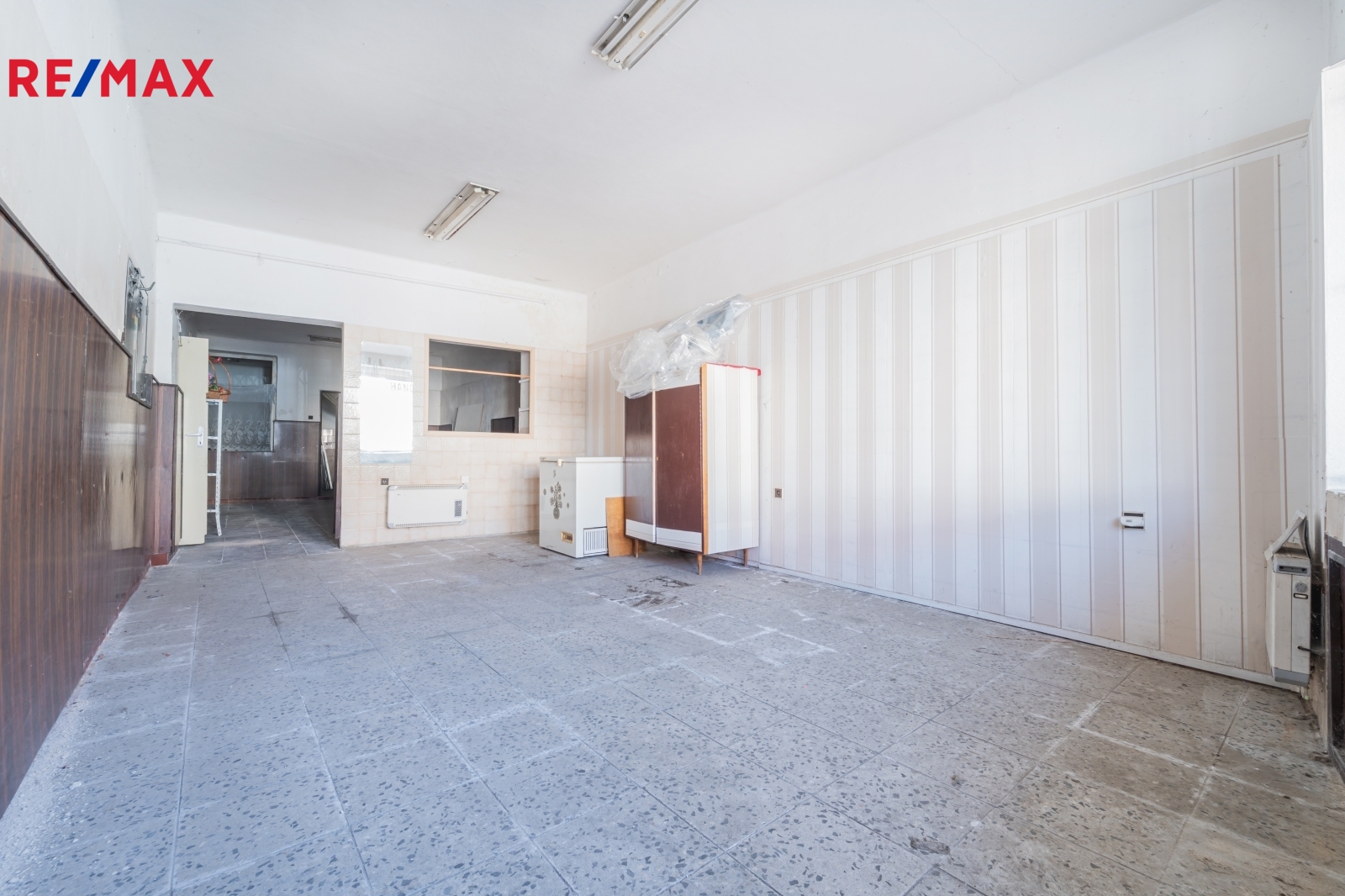 V přízemí se nacházejí dva obchodní prostory se samostatnými vstupy z ulice – menší a větší. K většímu prostoru náleží dva sklady, podzemní sklep a sociální zázemí jak pro zákazníky, tak pro personál. Prostory jsou v současnosti nevyužívané, po rekonstrukci mohou opět sloužit ke komerčnímu využití nebo být přizpůsobeny k bydlení.