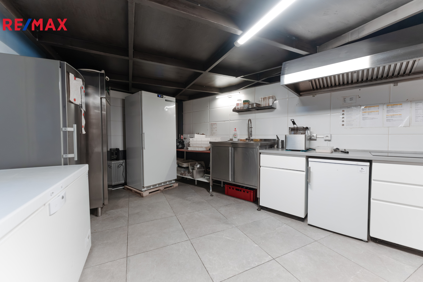 . kompletně vybavená kuchyně – trouby, sporák, pizza pec, chladicí a mrazicí technika