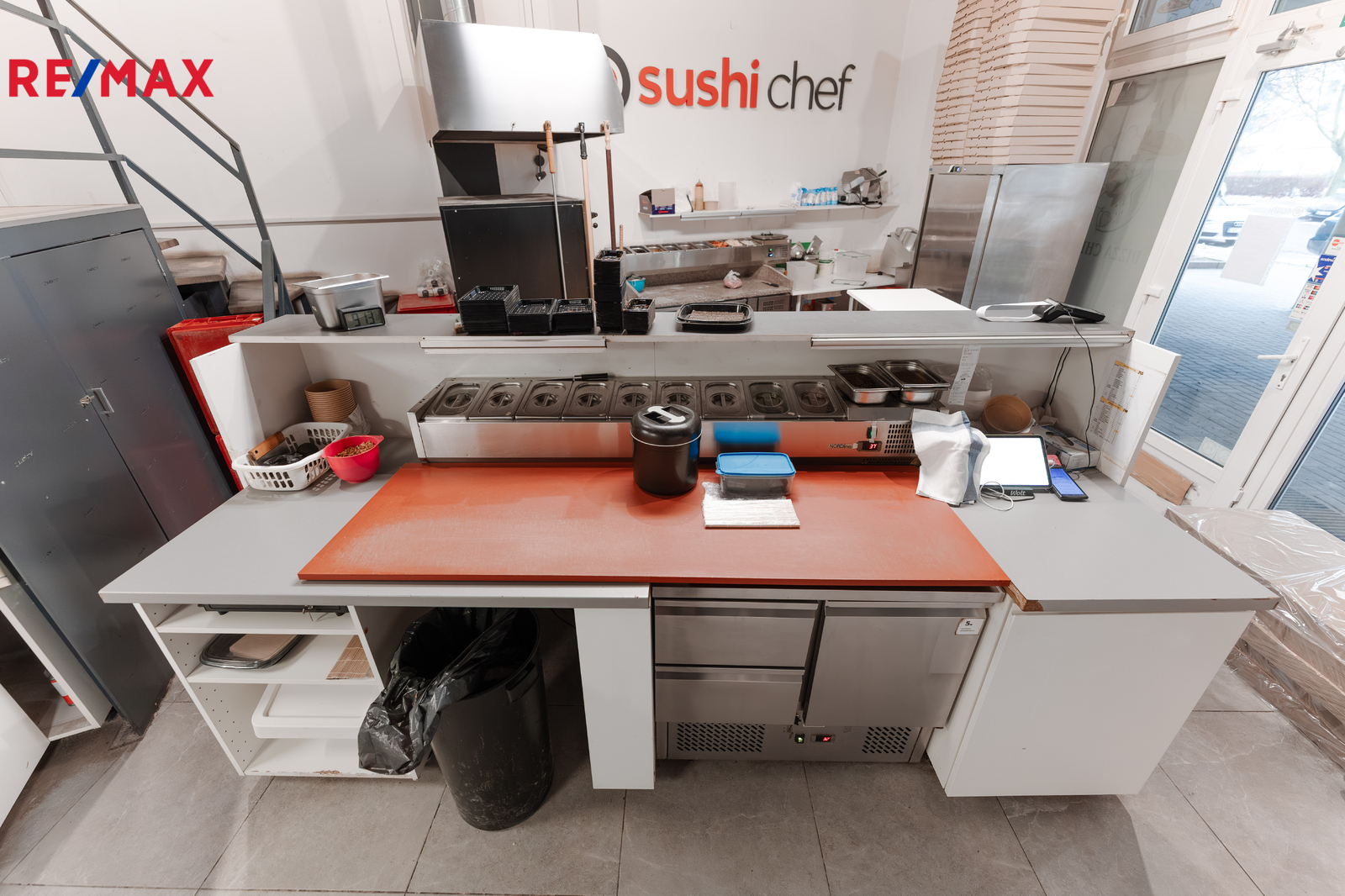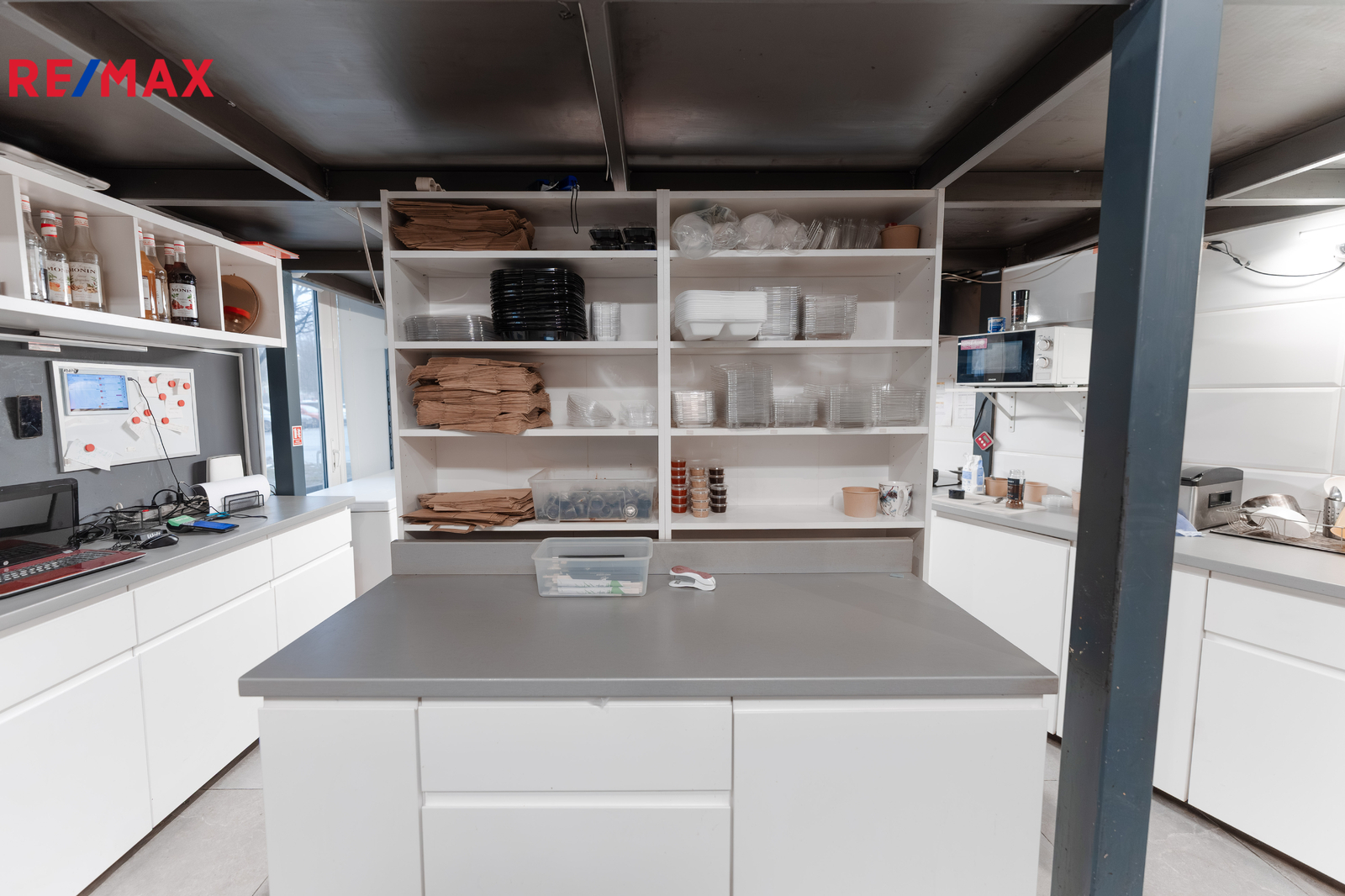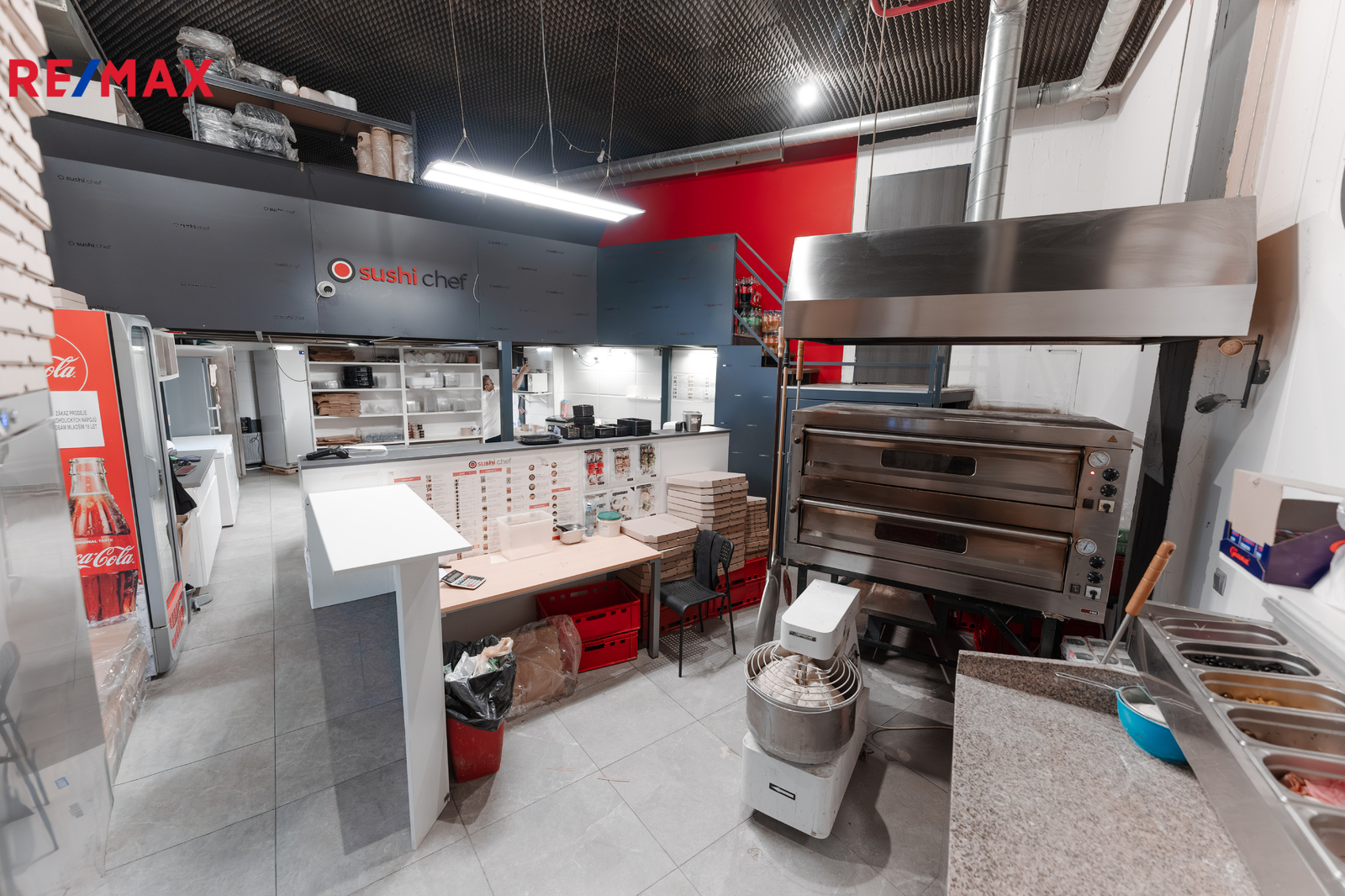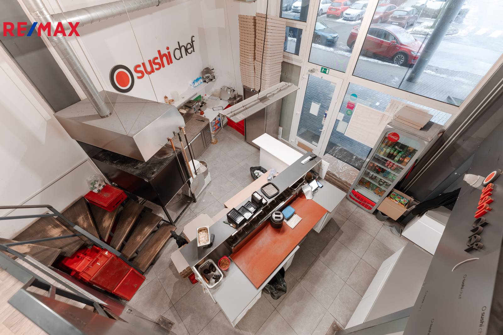 Prostor je řešen jako dvoupodlažní (mezonet), přičemž v patře je možnost vybudování kanceláře nebo administrativního zázemí. Provozovna je ideální pro pizzerii, sushi bar, rychlé občerstvení nebo provoz zaměřený na rozvoz jídla.