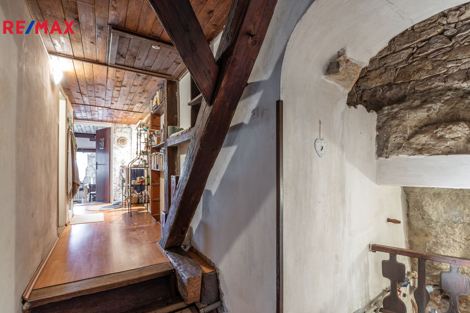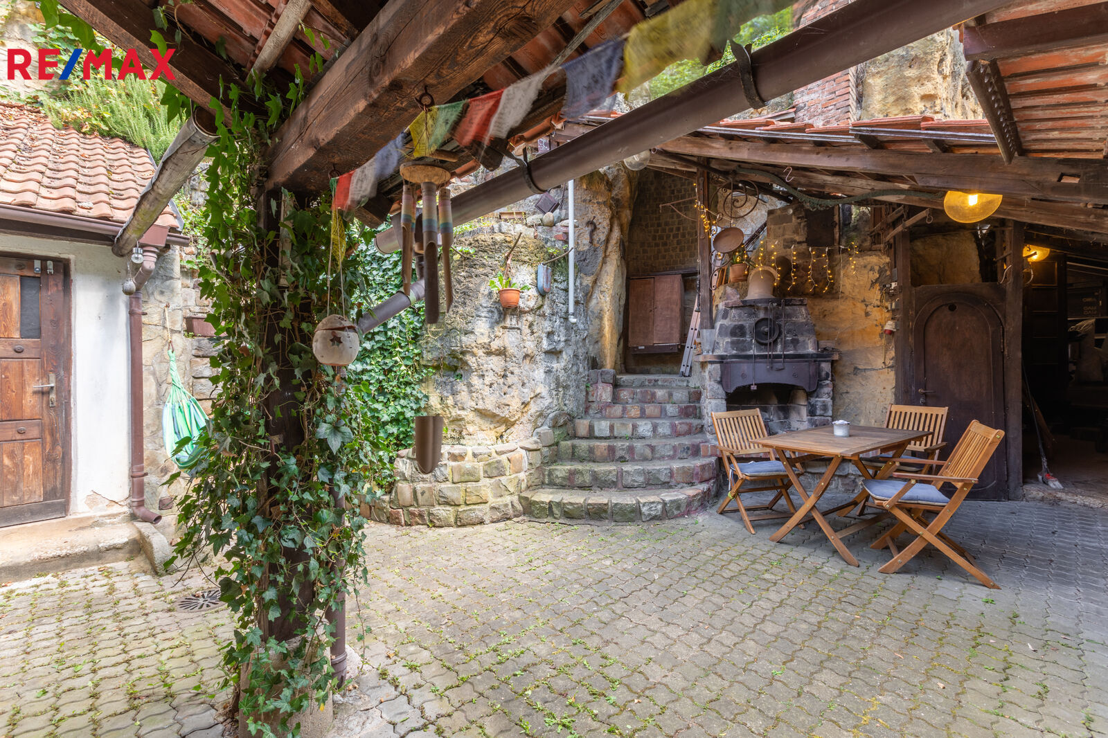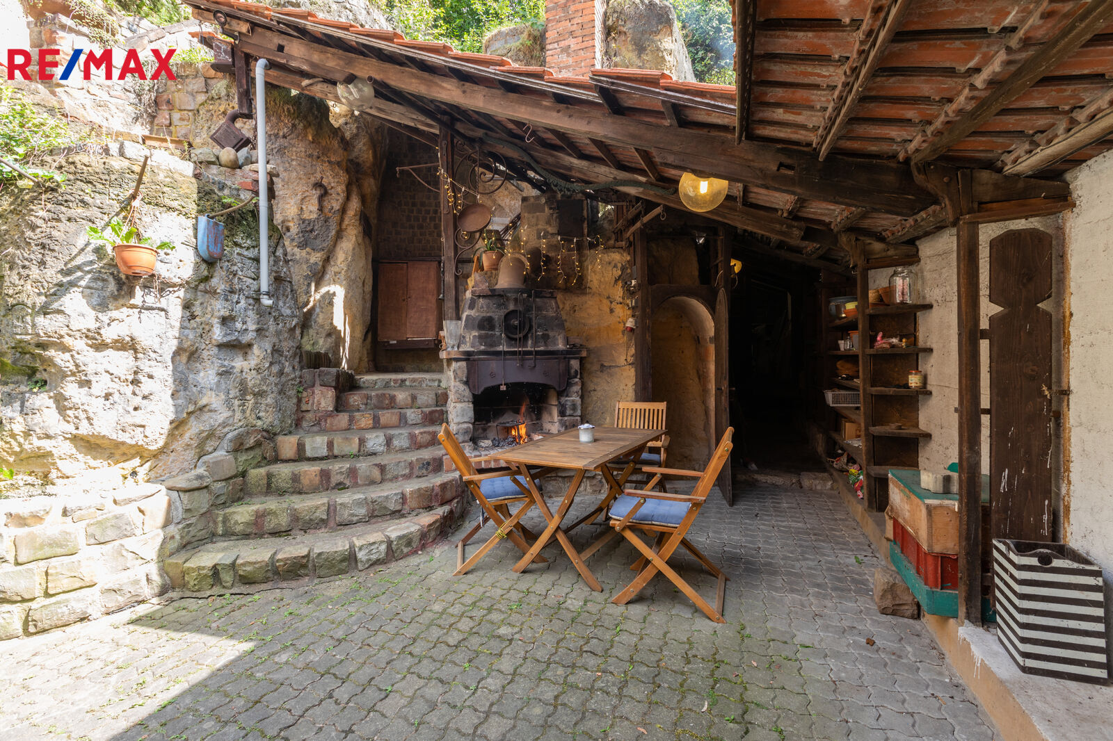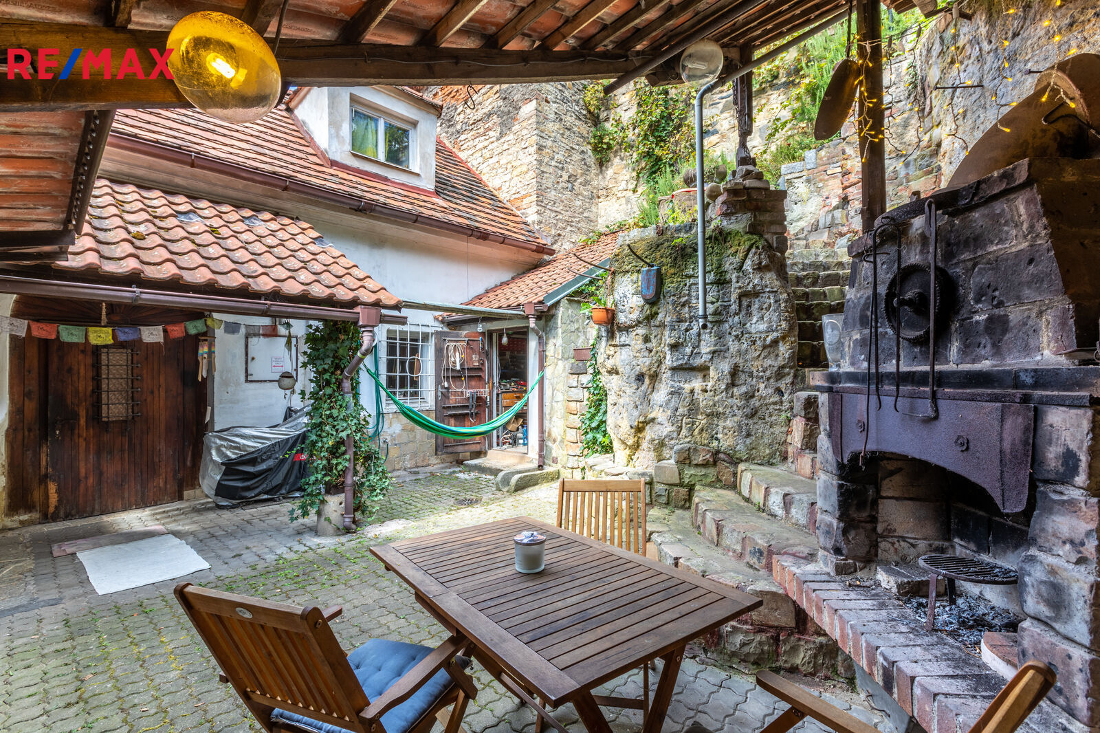 The house now has a total layout of 4+1. The ground floor includes: an entrance hall, a spacious living room with a fireplace, a kitchen, a bathroom, a utility room and a separate toilet. On the first floor there are three rooms, a shower room, a sink, a toilet and an entrance to the attic. The house is adjacent to a storage room/shed, outdoor seating and parking space. The house and yard offer many romantic corners with beautiful views. Through the stairs and cascades you can reach the accessible part of the castle wall with an extraordinary view.
