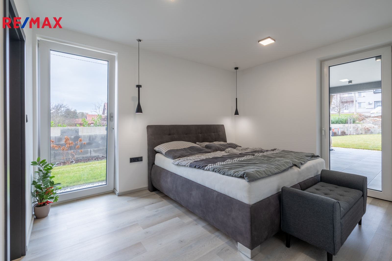 Dům nabízí 3 samostatné prostorné pokoje. Hlavní ložnice má navíc vlastní šatnu a soukromou luxusní koupelnu, což poskytuje naprostý komfort rodičům. Nechybí ani pracovna, kterou můžete snadno proměnit v dětský pokoj nebo pokoj pro hosty.